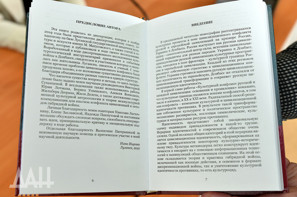 «Луганский ученый, философ и участник крупнейшего, не побоюсь этого слова - в мире, донецкого литературного форума «Звезды над Донбассом» Нина Сергеевна Ищенко привезла в Донецк свою научную работу, благодаря которой термин «фронтир» получил научное обоснование», - представил автора труда председатель Общественной палаты ДНР Александр Кофман, добавив, что Донбасс в очередной раз таким образом «показывает единую политику, единые цели и единое культурное пространство».