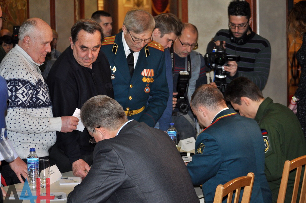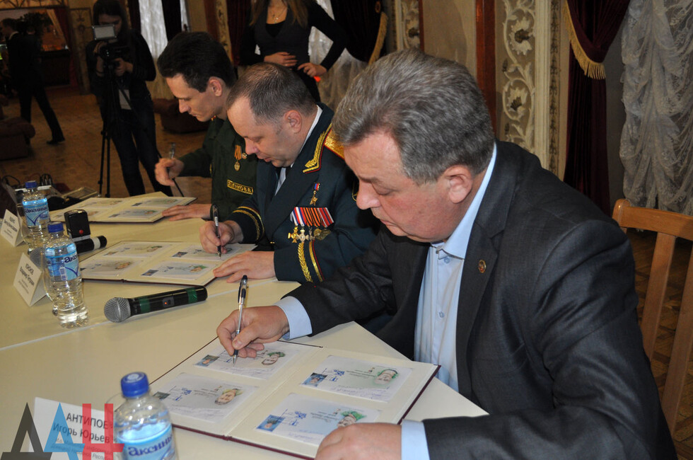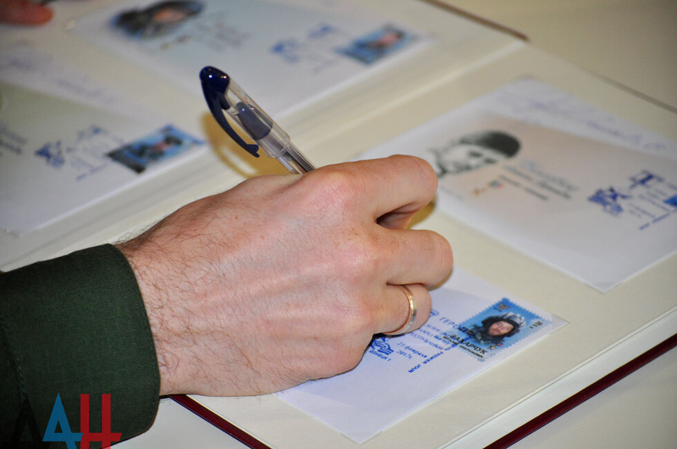 По традиции участники гашения проштамповали конверты с марками специальными штемпелями и расписались на них. После этого прошла автограф-сессия. В конце мероприятия Кононов и Яценко вручили на память марки родственникам погибших Героев ДНР.