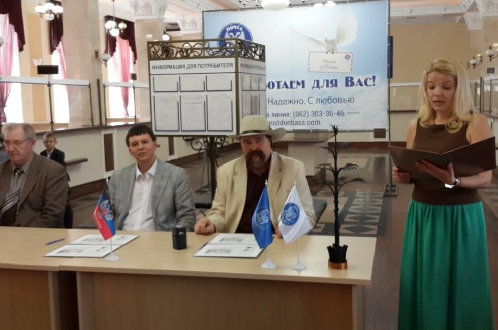 В спецгашении приняли участие заместитель министра связи ДНР Александр Рыжков, автор современных копий Пальмы Мерцалова донецкий кузнец Сергей Каспрук и представители ГП «Почта Донбасса».