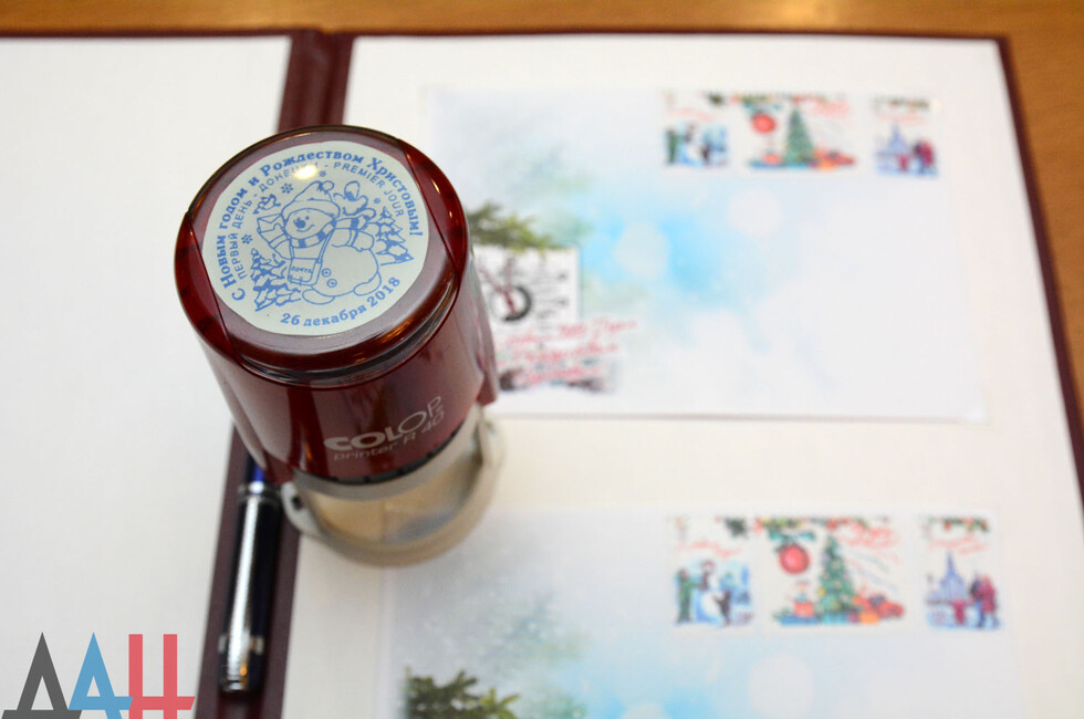Донецк, 26 дек – корр. ДАН. Государственное предприятие «Почта Донбасса» ввела сегодня в обращение художественные марки и конверт к Новому году и Рождеству Христову. Церемония специального гашения прошла в здании донецкого Главпочтамта.