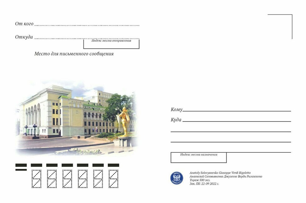 Донецк, 23 сен — ДАН. Государственное унитарное предприятие «Почта Донбасса» (ГУП «ПД») выпустило марку и конверт первого дня в честь народного артиста СССР Анатолия Соловьяненко. Об этом сегодня сообщили на предприятии.