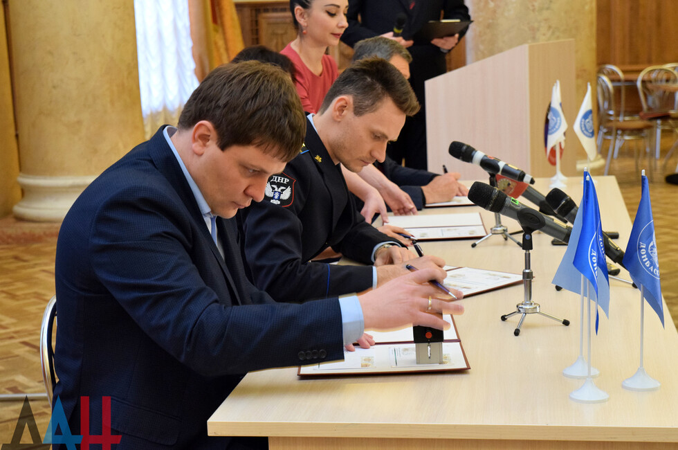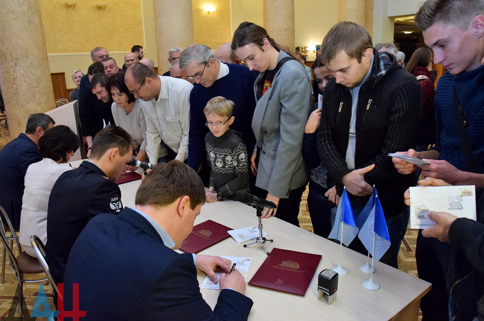 В мероприятии приняли участие министр связи ДНР Виктор Яценко, и.о. министра культуры ДНР Михаил Желтяков, генеральный директор-художественный руководитель Донецкого муздрамтеатра Наталья Волкова и генеральный директор ГП «Почта Донбасса» Денис Неудачин.