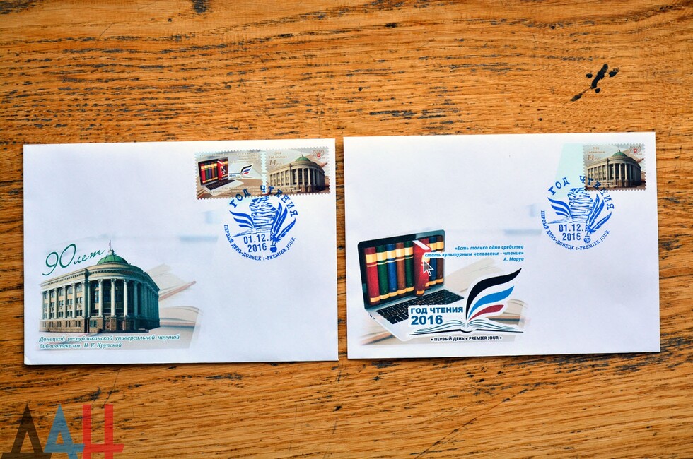 Донецк, 1 дек – корр. ДАН. Государственное предприятие «Почта Донбасса» ввела в обращение марку и два конверта по случаю 90-летия Донецкой республиканской универсальной научной библиотеки им. Крупской. По этому случаю в здании главной библиотеки ДНР собралось более 150 гостей.