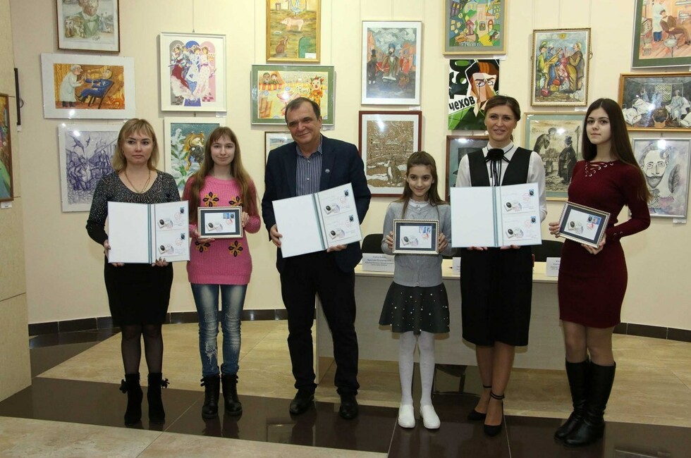 Уточняется, что в спецгашении приняли участие профессор, заведующий кафедрой русского языка ДонНУ Вячеслав Теркулов, директор художественного музея «Арт-Донбасс» Екатерина Калиниченко, директор центра почтовой связи Донецка Кристина Тарасенко, а также участники Открытого конкурса детского рисунка «Чеховский мир».