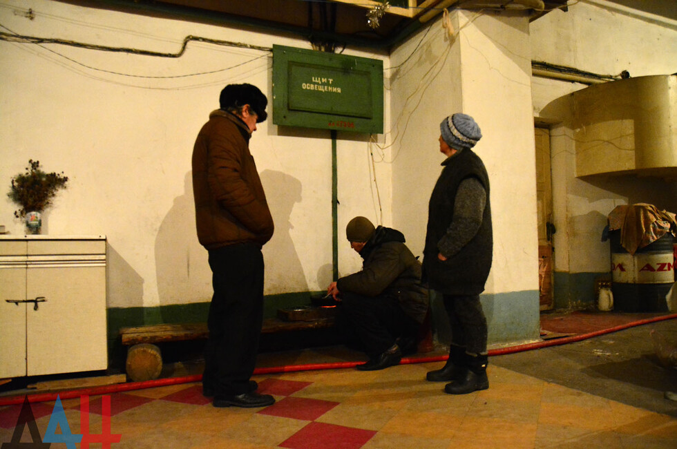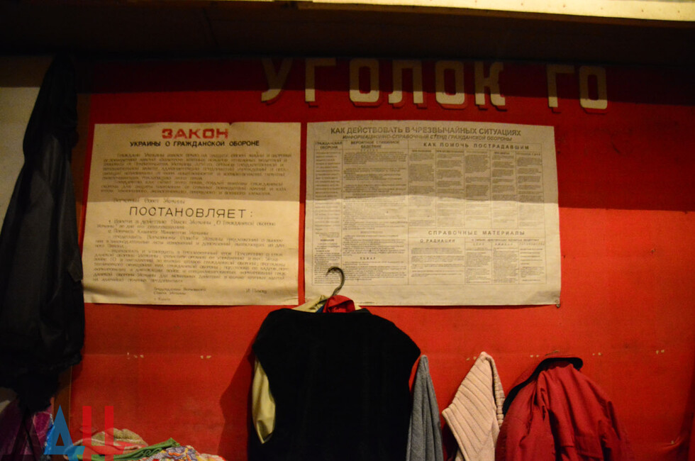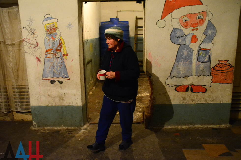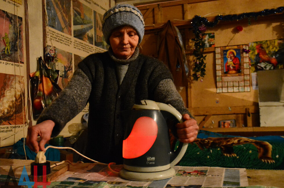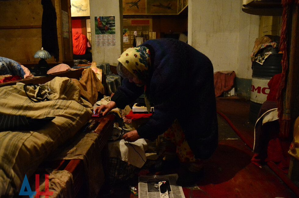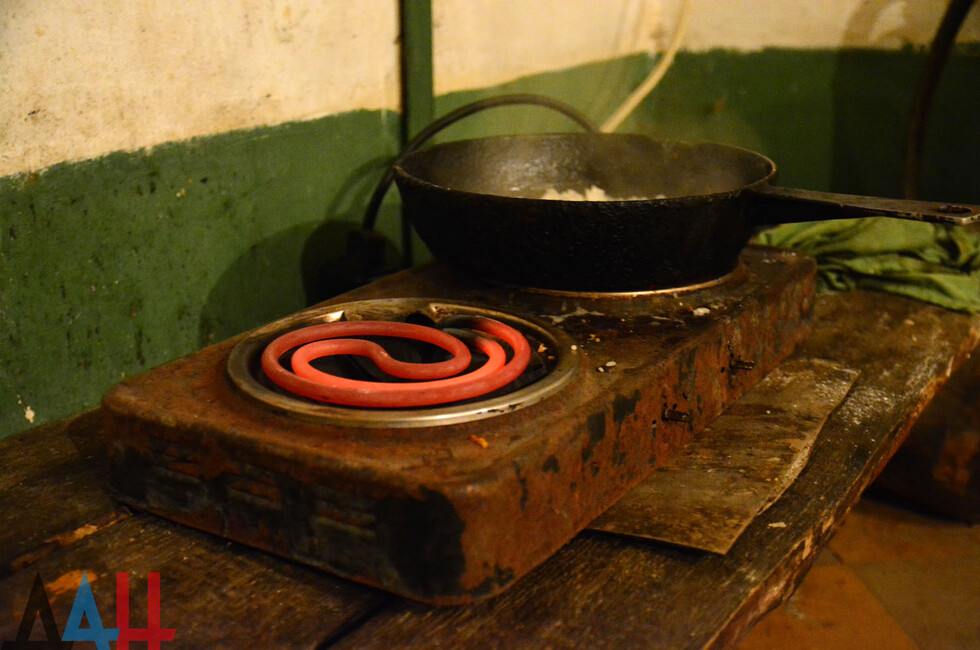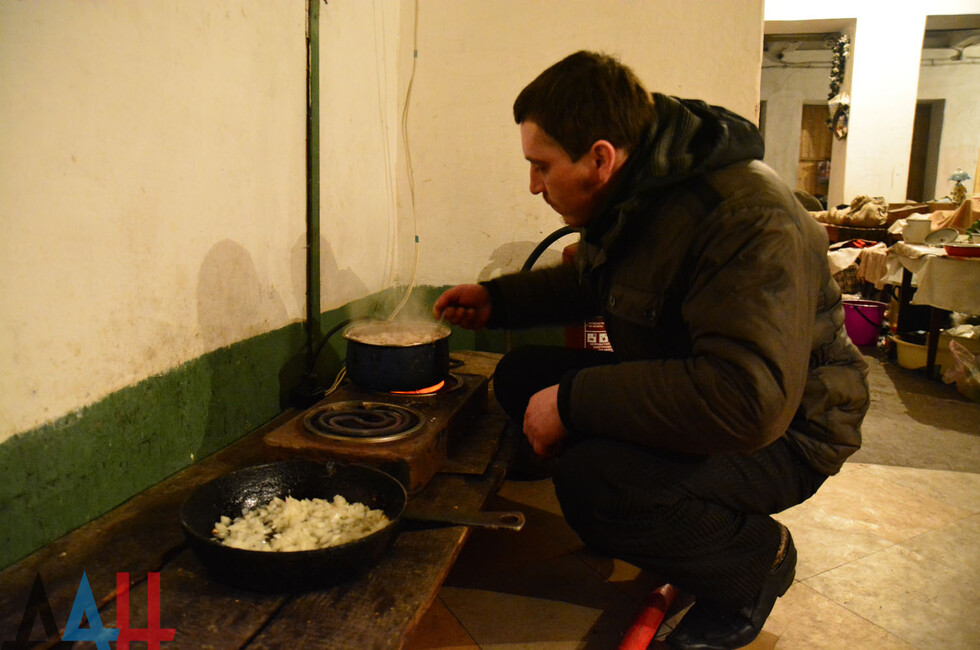 Сегодня в укрытии обеспечены необходимые для жизни условия: проведено электричество, имеется печь для приготовления пищи и емкость с питьевой водой. Когда жильцы не заняты будничными хлопотами или работой, они собираются перед телевизором, который в канун Нового года подарил мэр Донецка.
