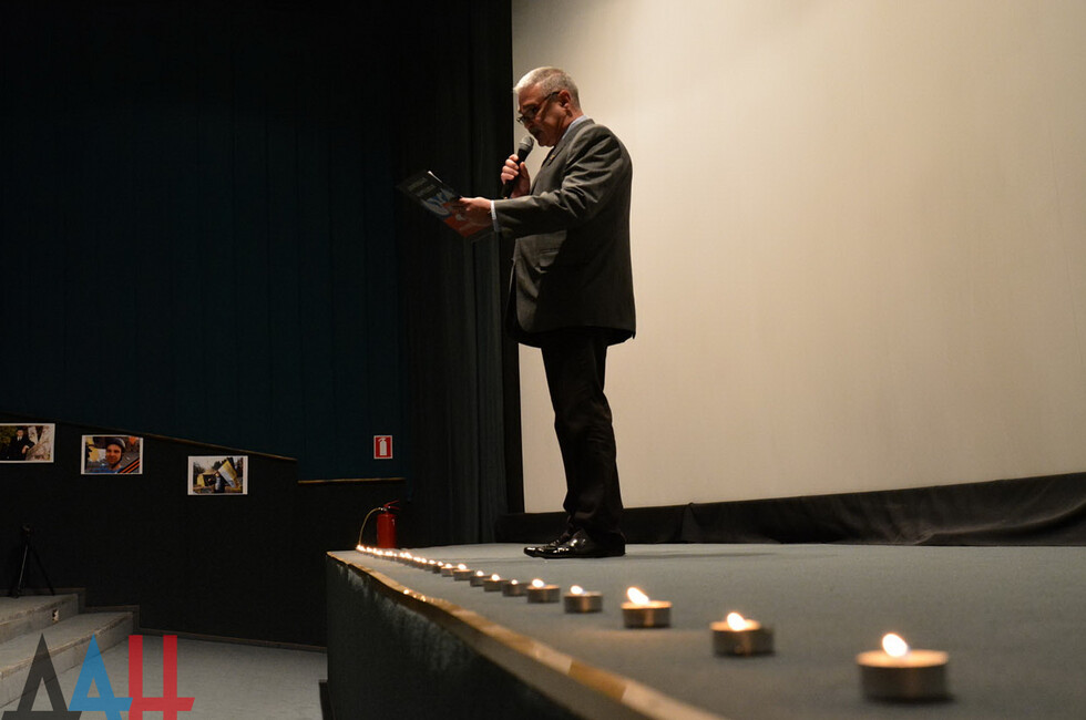 На стенах кинозала висели фотографии погибших. У самого экрана горели 48 свеч – ровно столько жизней унесла одесская трагедия. В самой сорокаминутной киноленте были использованы различные кадры событий 2 мая на Куликовом поле, а также рассказы очевидцев. Многие во время просмотра не могли сдержать слез.