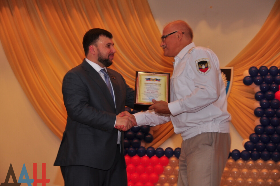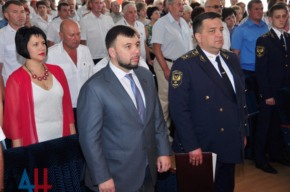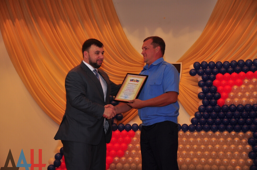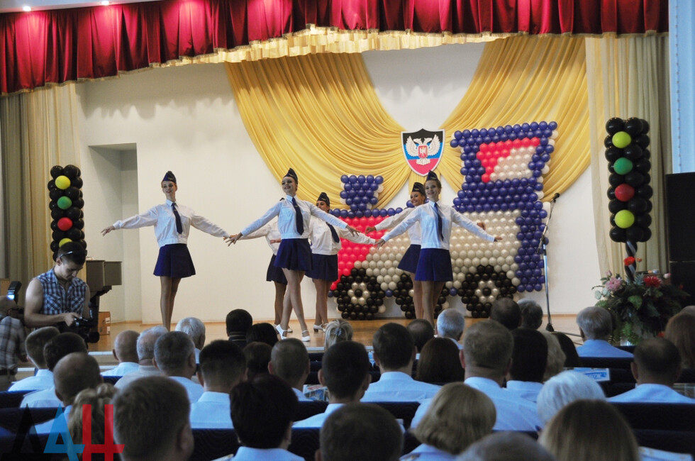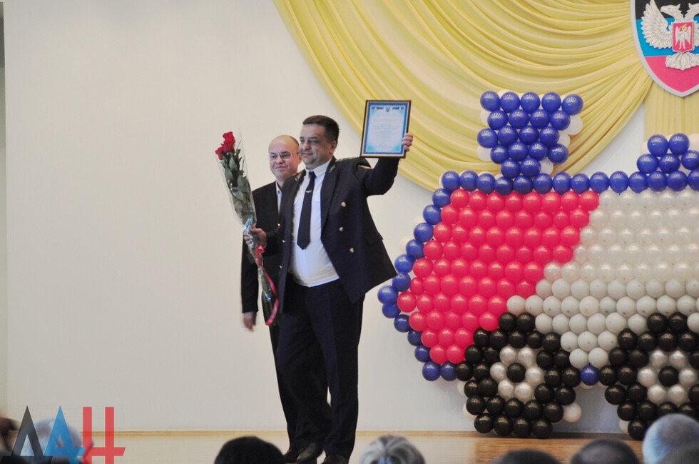 Официальная часть началась с гимна Республики. Затем врио министра транспорта Ростислав Маркелов зачитал поздравительный адрес Главы ДНР Александра Захарченко.