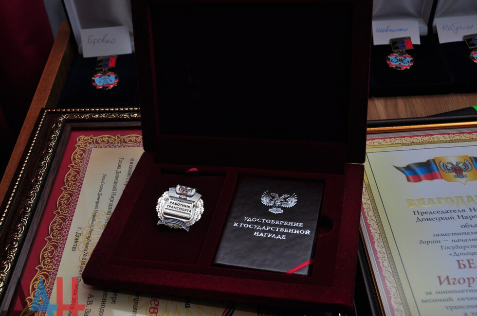 За высокие достижения в труде порядка 50 работников отрасли получили награды. В частности, директору госпредприятия присвоено почетное звание «Заслуженный работник транспорта Донецкой Народной Республики», двое железнодорожников награждены медалью «За трудовую доблесть», трое – почетными грамотами Главы ДНР, стольким же вручены благодарности председателя Народного Совета, остальные получили ведомственные и награды от лица предприятия.