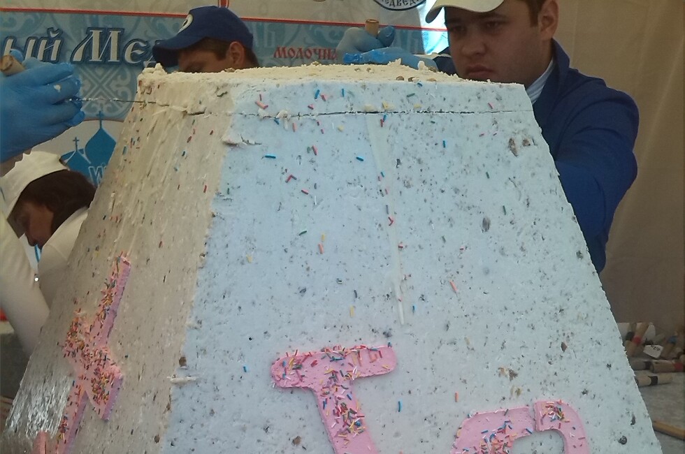 Над созданием пасхи трудились восемь кулинаров. По словам представителя молочной компании, сначала они набивали форму, затем кулич несколько дней морозился в холодильной камере. Для приготовления было истрачено 300 кг творога, 100 кг сахарной пудры, 60 кг сливочного масла, 30 - изюма, шесть - арахиса, а также килограмм мускатного ореха, корицы и ванилина и три кг глазури.