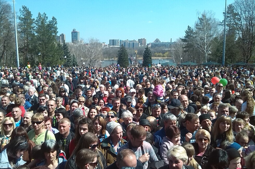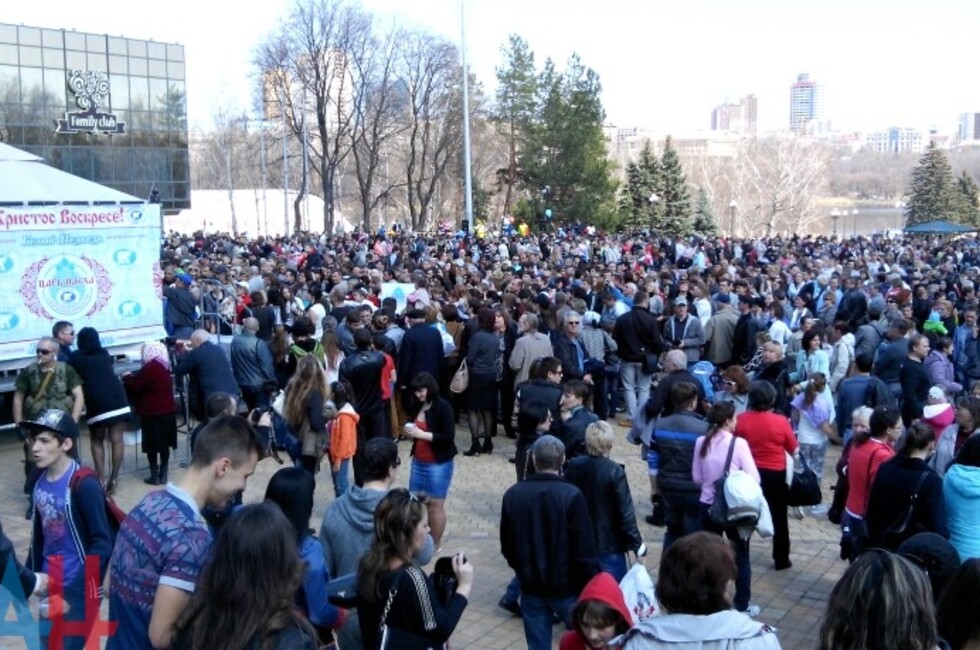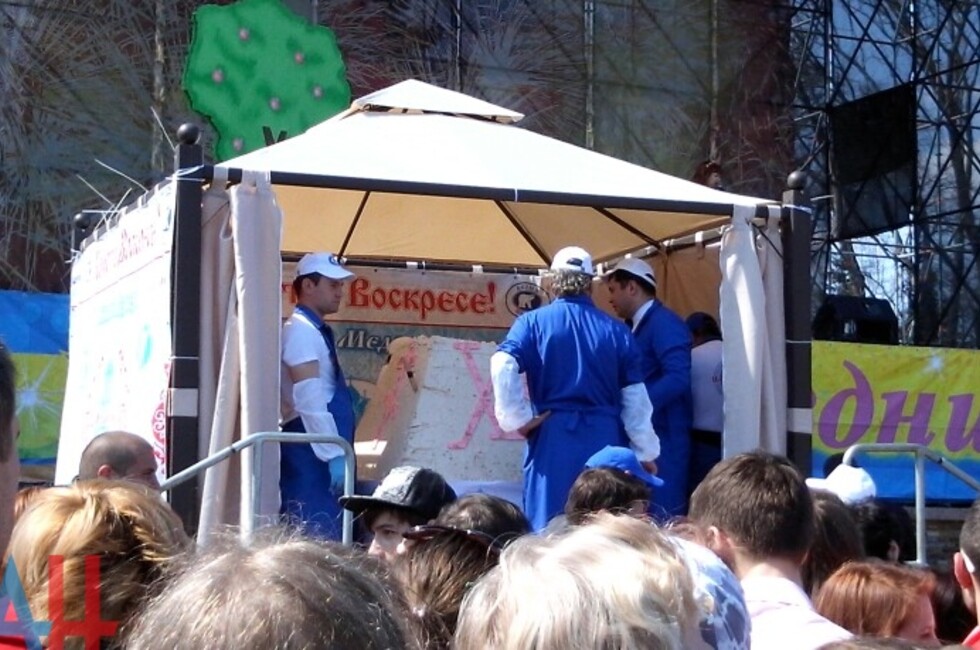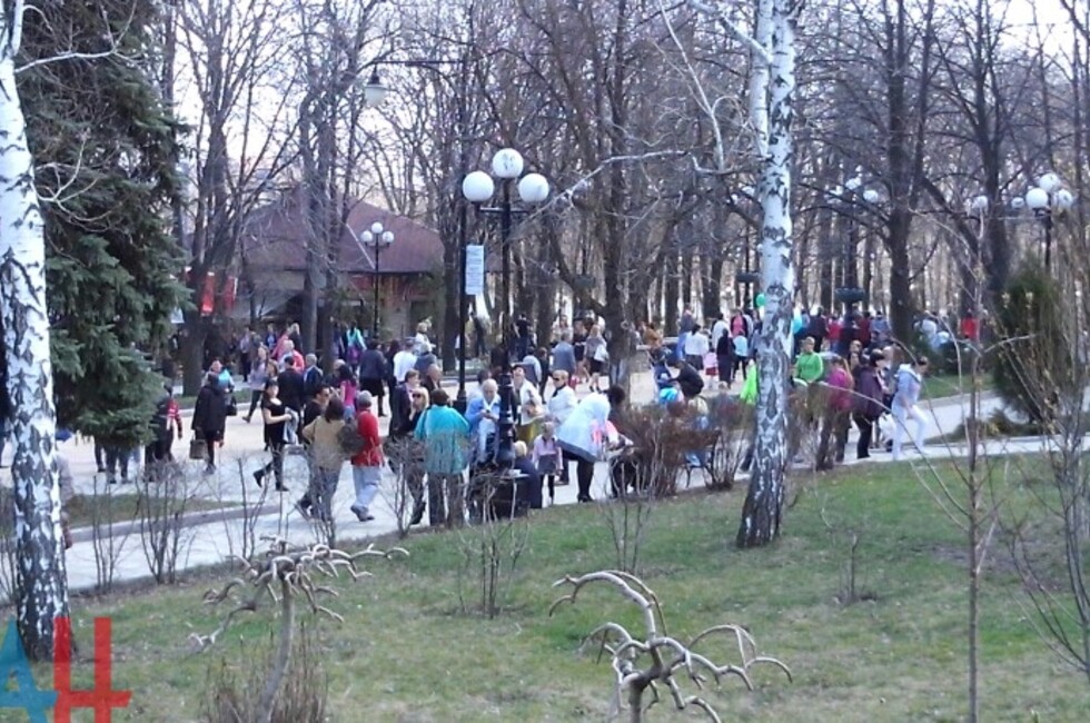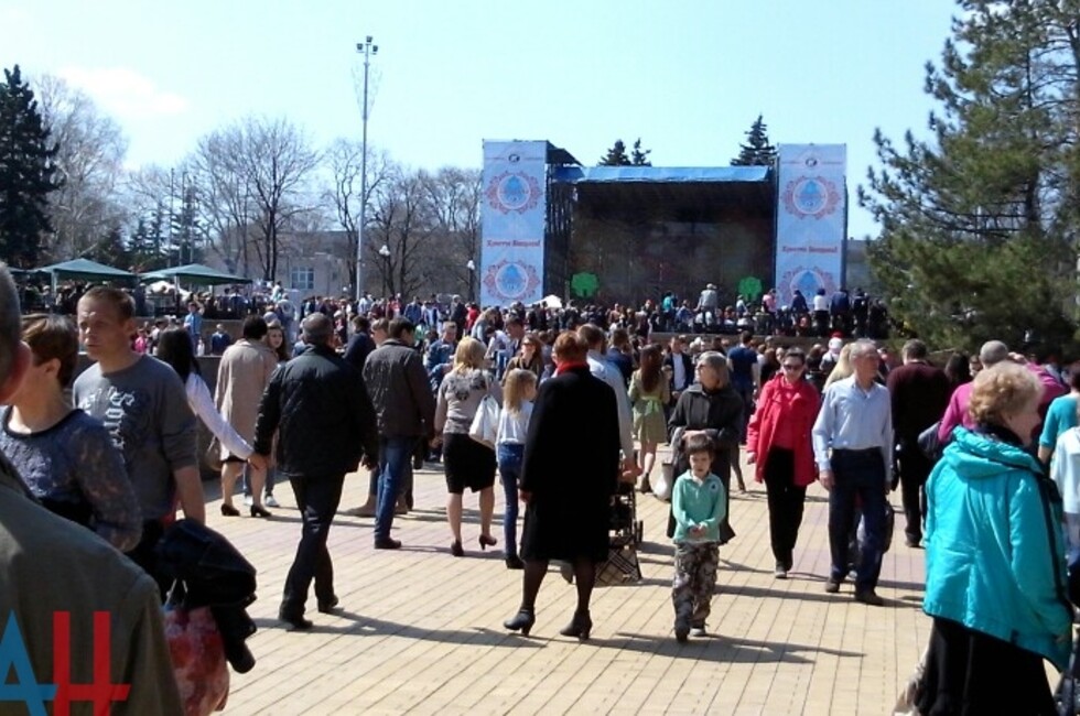 Мероприятия в парке имени Щербакова в Донецке собрали десятки тысяч жителей и гостей столицы. В очереди за праздничным куличом стояли взрослые, пенсионеры и дети. На центральной аллее парка был установлен самовар с бесплатным чаем, а также организована ярмарка народных мастеров. Рядом каждый желающий мог сделать фото в обнимку с пасхальным кроликом.