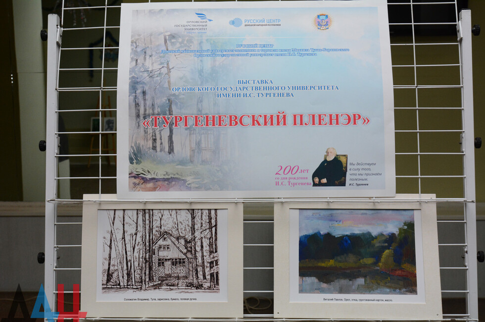 «К 200-летию Ивана Сергеевича Тургенева университет (Орловский государственный университет им. И.С. Тургенева - прим. ДАН) проводил выставку художественного творчества художников Орловской, Рязанской, Брянской, Липецкой и Московской областей. Все эти картины были выставлены в университете. Мы <...> как вуз-партнер решили тоже у себя эту выставку открыть», - сказала ректор ДонНУЭТ Светлана Дрожжина.
