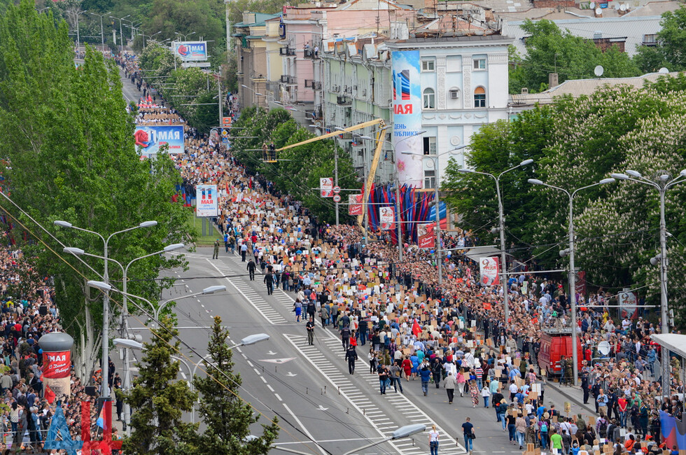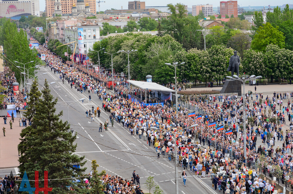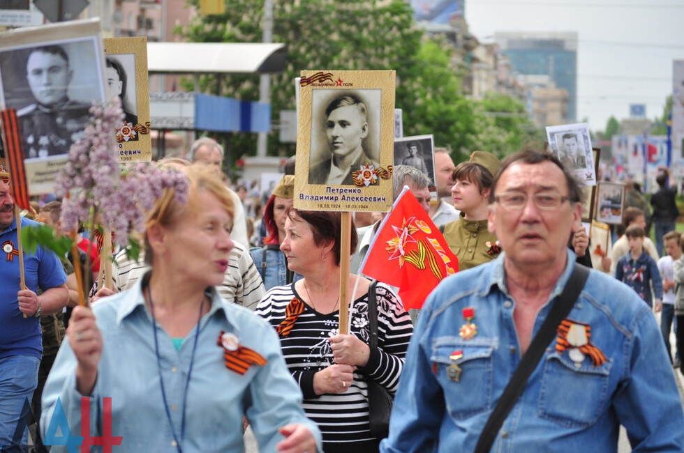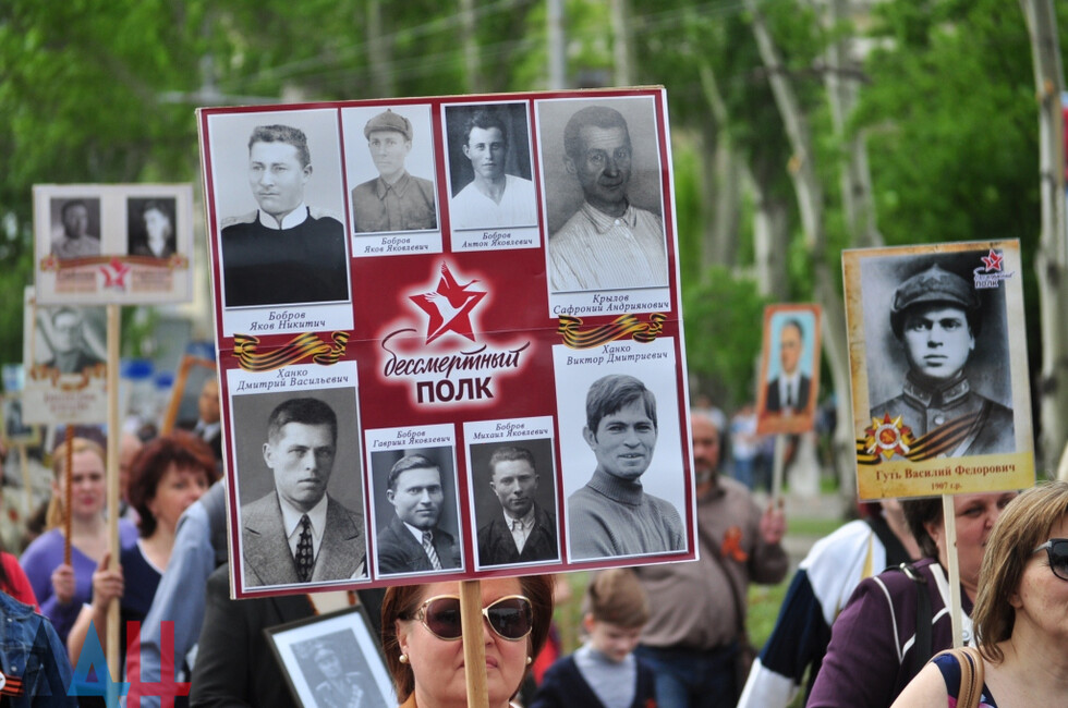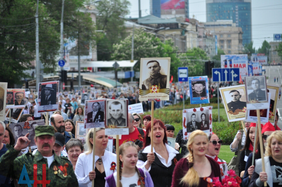 По официальным данным, в акции приняли участие около 72 тысячи человек - рекордный показатель в истории Республики. Среди них – жители различных городов и районов ДНР, подконтрольной Киеву территории Донбасса, Российской Федерации и других стран. Участники несли портреты погибших как в боях Великой войны, так и в ходе конфликта в Донбассе родственников. Возглавила колонну машина с ветеранами ВОВ.