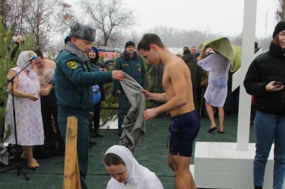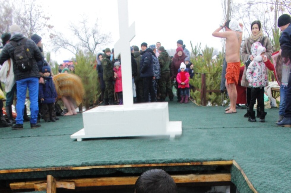 Она добавила, что мероприятие посетили представители местных властей и парламентарии ДНР. Всего собралось более тысячи жителей. Для них был проведен праздничный молебен, а после состоялись окунания в проруби. Всех желающих угощали горячем чаем и сладостями.