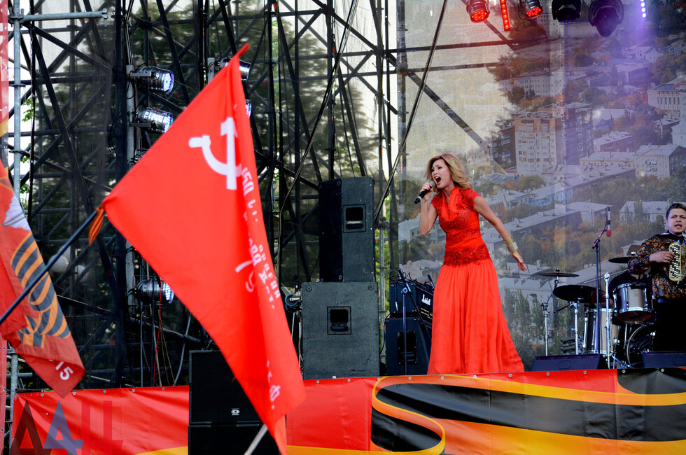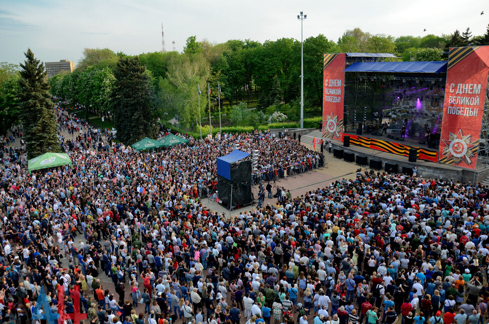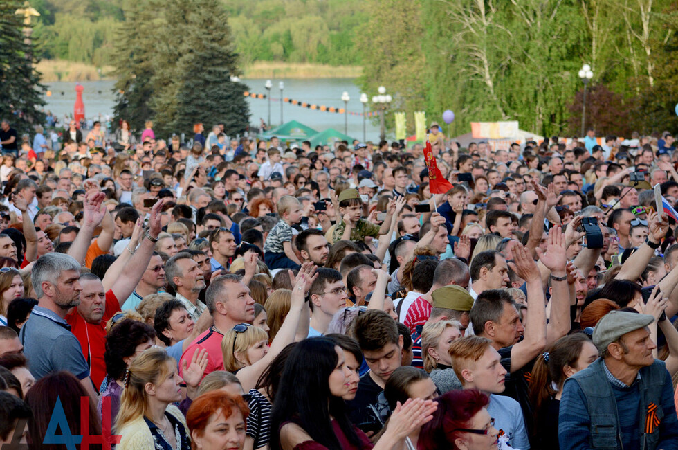 Донецк, 9 мая – корр. ДАН. Концерт в честь 73-летия со Дня Победы прошел сегодня в столице Донецкой Народной Республики. На сцене центрального парка культуры и отдыха имени Щербакова выступили артисты из РФ Вадим Самойлов, Вика Цыганова и Александр Маршал.