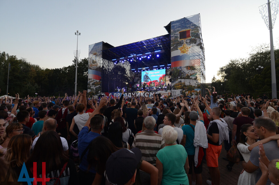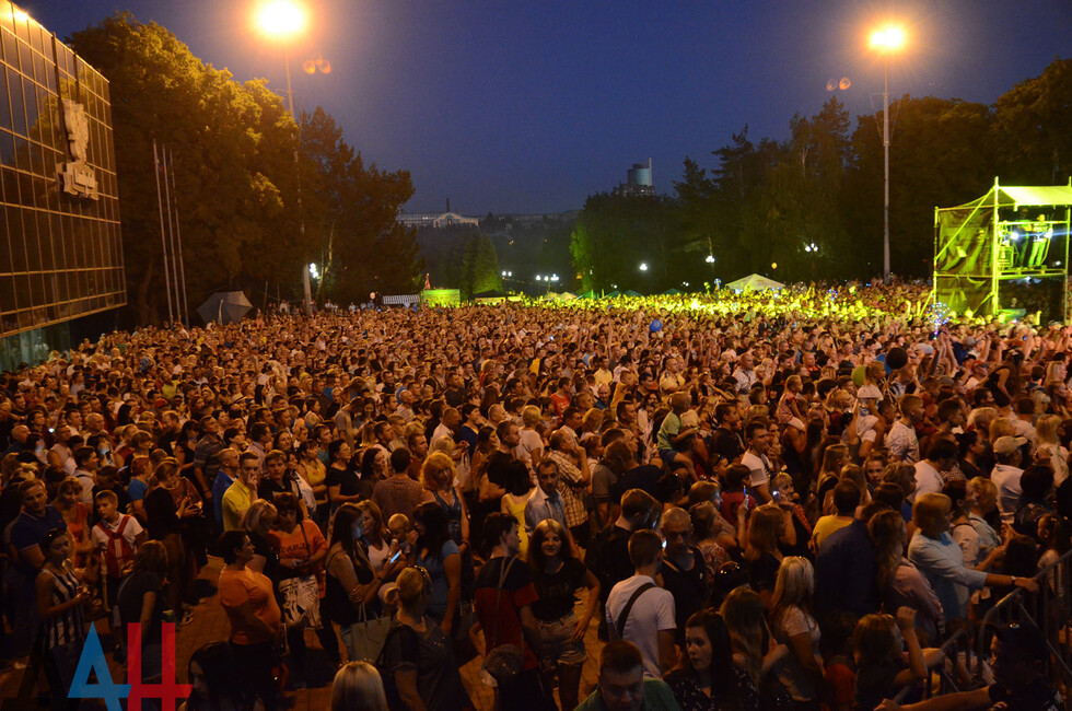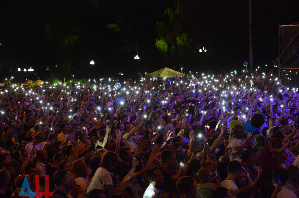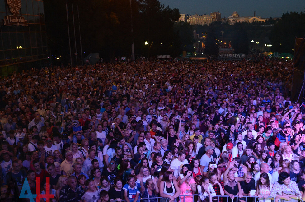 Первым для жителей ДНР выступил коллектив Opium Project. В исполнении солиста Александра Хальзева прозвучали хиты группы "Руки вверх" - «Крошка моя», «Он тебя целует», «Чужие губы» и другие. Продюсером этой группы является основатель «Руки Вверх» Сергей Жуков.