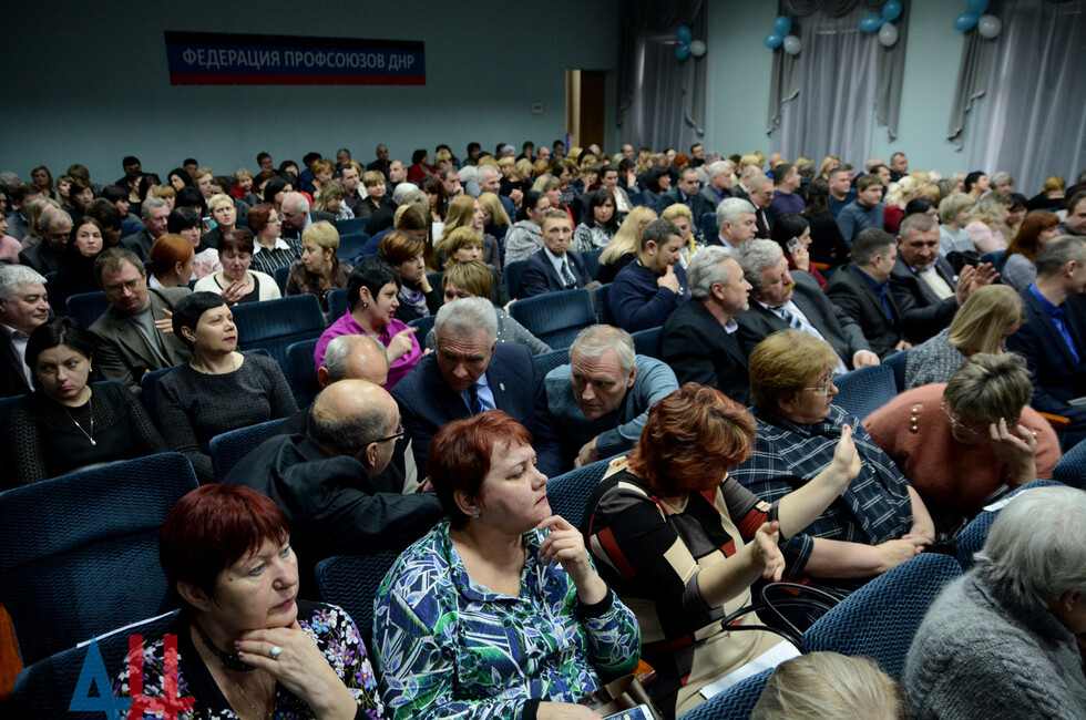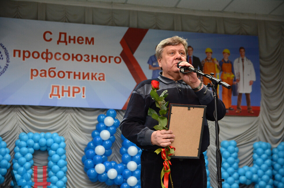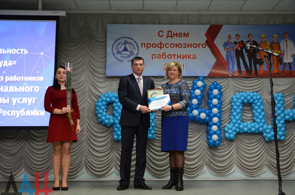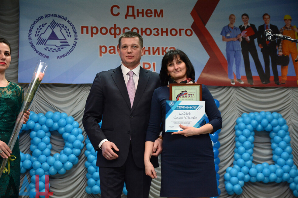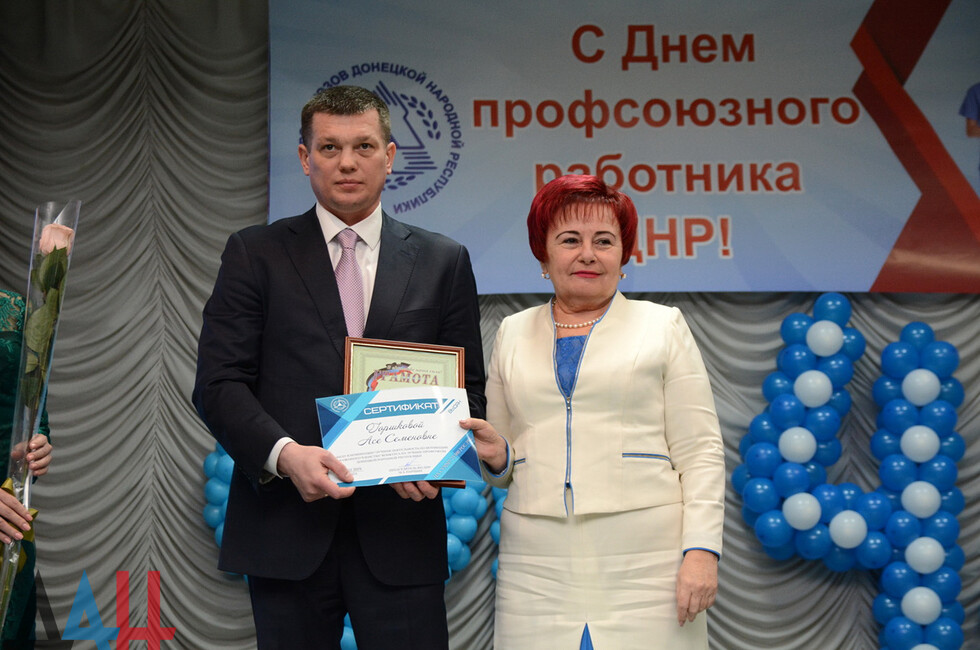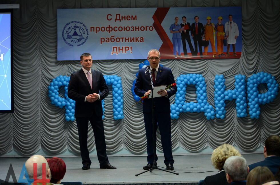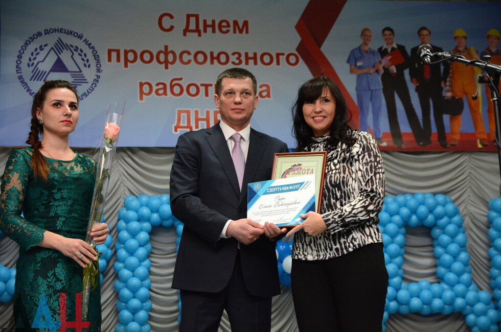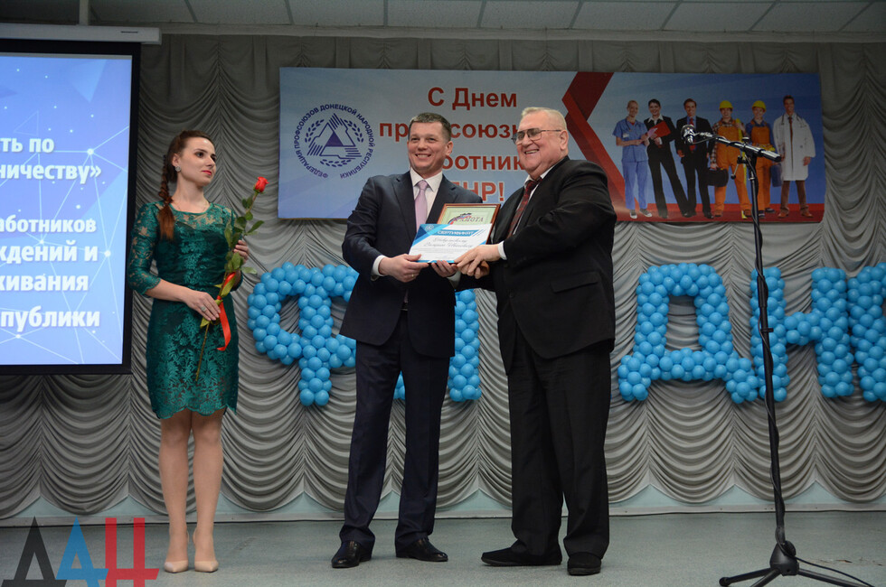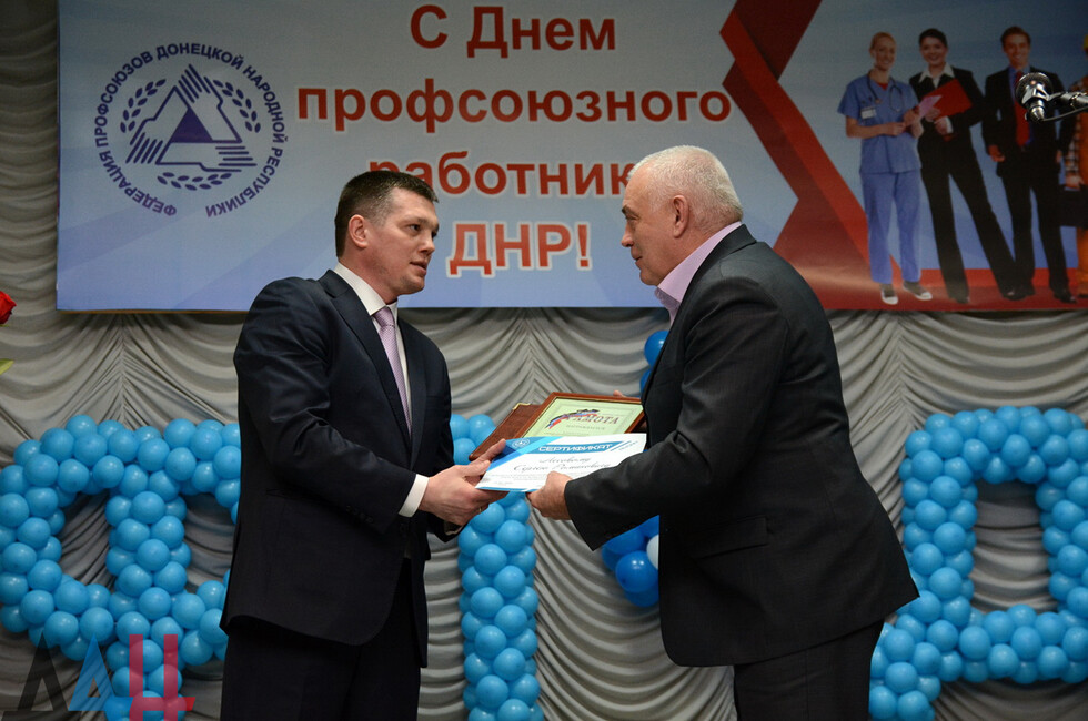 После этого он вручил награды призерам конкурса лучших профсоюзов Донбасса. Конкурсная комиссия оценивала их достижения в различных сферах деятельности по восьми номинациям, в каждой из которых определялись два победителя – по одному профсоюзу от ДНР и подконтрольного Киеву Донбасса. Всего было отмечено 16 профсоюзных организаций.