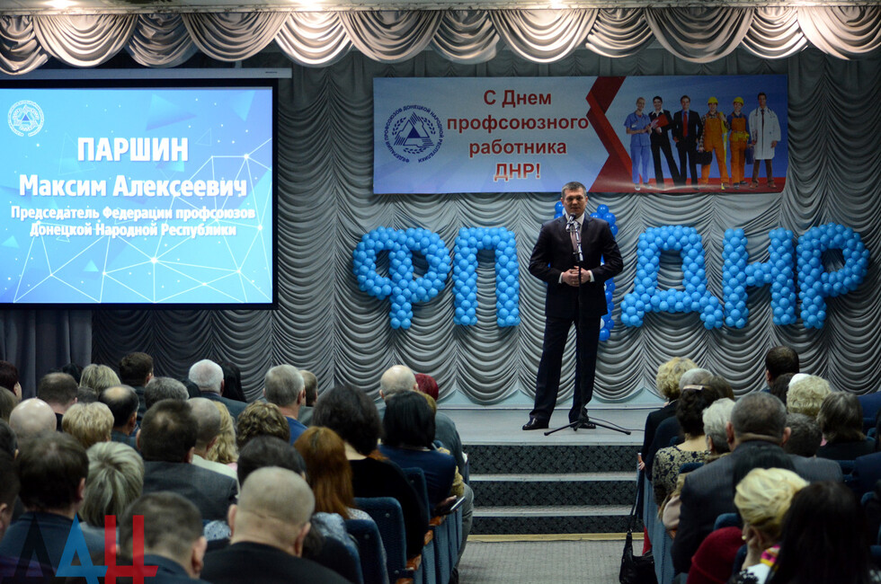 Донецк, 21 фев – корр. ДАН. Председатель Федерации профсоюзов (ФП) ДНР Максим Паршин наградил представителей лучших профессиональных союзов Республики и подконтрольной Киеву территории Донецкой области. Торжественная церемония состоялась сегодня в столичном Доме профсоюзов.