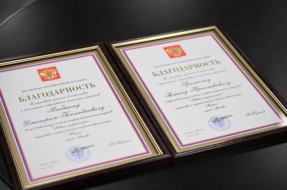 Донецк, 22 дек — ДАН. Пятеро сотрудников Донецкого агентства новостей отмечены Благодарностями и Благодарственными письмами Президента РФ Владимира Путина. Награды были вручены в преддверии 10-й годовщины со дня основания агентства, которая отмечается сегодня, 22 декабря.