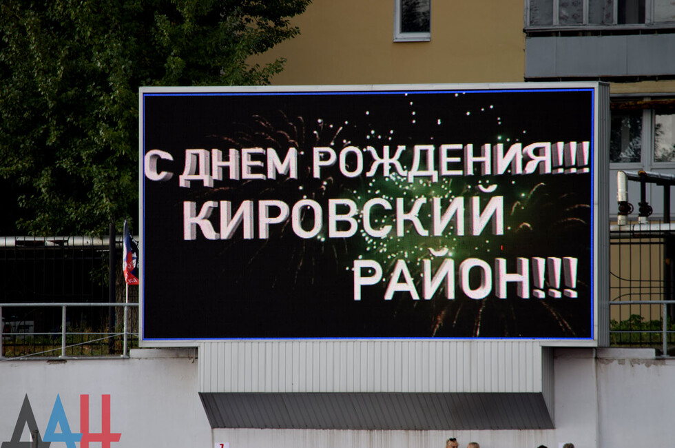 Донецк, 1 сен – корр. ДАН. Торжественное мероприятие по случаю 80-й годовщины со дня основания Кировского района Донецка прошли сегодня на местном стадионе «Кировец». На трибунах спортивного сооружения собралось порядка 5000 жителей и гостей столицы ДНР.