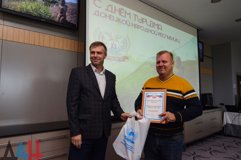 На мероприятии в связи с наступающим Днем туризма (27 сентября) Орехов вручил благодарности министерства и благодарственные письма ученым ДонНУЭТ, сотрудникам дворцов детского и юношеского творчества, центров туризма и краеведения, а также представителям местных властей, отличившимся в сфере развития туризма.
