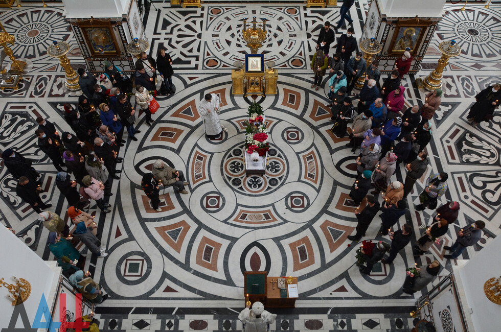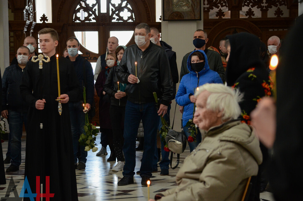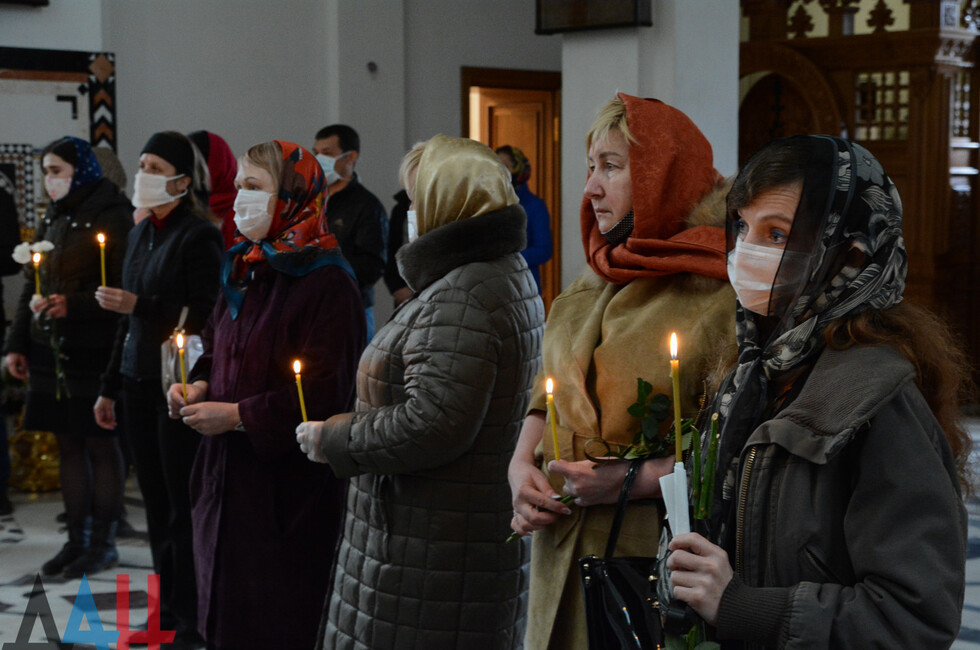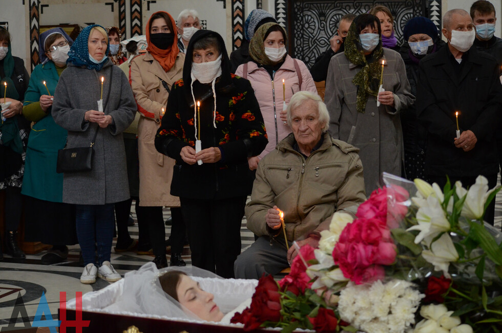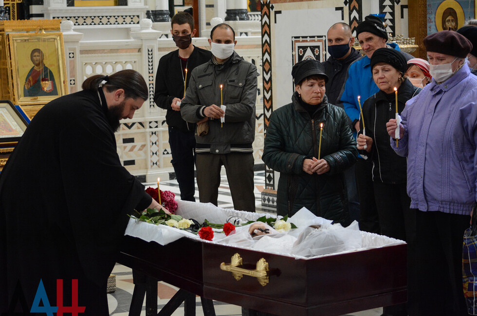 Донецк, 11 апр – ДАН. Церемония прощания с погибшей в результате обстрела с беспилотника поселка Широкая Балка в Горловке Мирославой Воронцовой прошло сегодня в Богоявленском кафедральном соборе, передает корр. ДАН с места события.