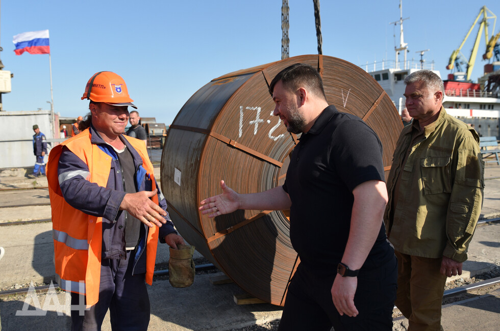 Торговый порт Мариуполя был полностью освобожден от украинских боевиков 13 апреля, 25 мая — завершены работы по его разминированию. В воскресенье, 29 мая, началась погрузка российского сухогруза типа «Славутич» — первого судна, вошедшего в морскую гавань Мариуполя после освобождения города. Груженое судно выдвинулось в обратный путь сегодня, в порт назначения оно доставит металлопрокат. Согласно заявлению Пушилина, порт планируется использовать для быстрой доставки строительных материалов, необходимых для восстановления.