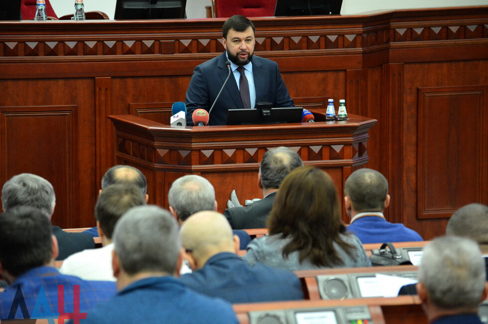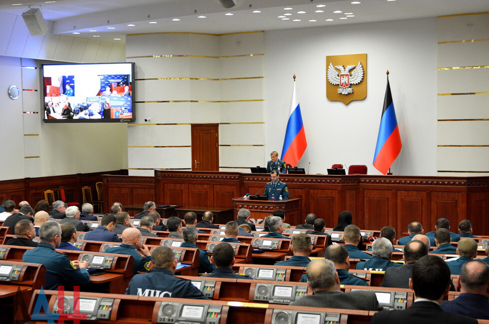 Собрание прошло в сессионном зале Народного Совета ДНР. В мероприятии приняли участие Глава Республики Денис Пушилин, руководитель МЧС ДНР Алексей Кострубицкий, главы министерств и ведомств, местных администраций и другие. Всего – порядка 100 человек.