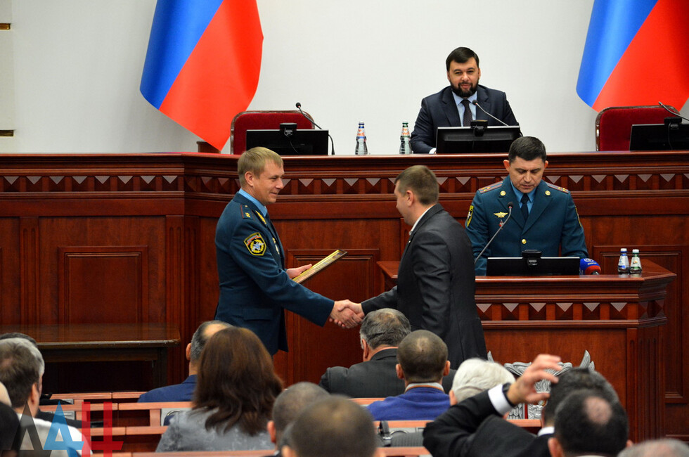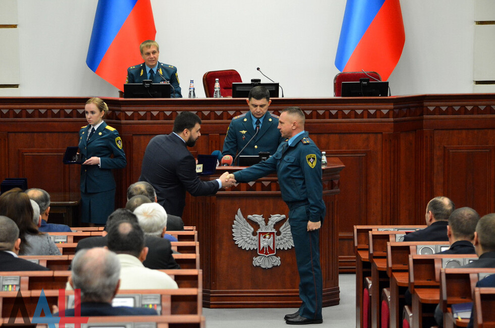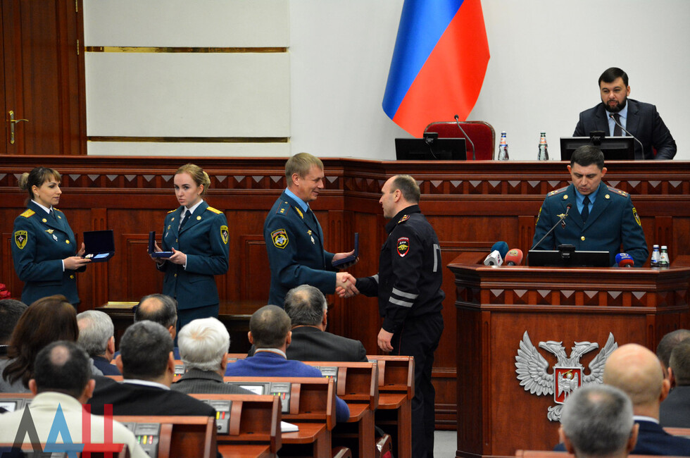 После этого по итогам работы в 2018 году он наградил знаками «За заслуги перед Республикой» 12 сотрудников МЧС ДНР. Еще 10 ведомственных наград были вручены Кострубицким – две медали «За содействие делу спасения», шесть памятных знаков «85 лет гражданской обороне» и две грамоты.