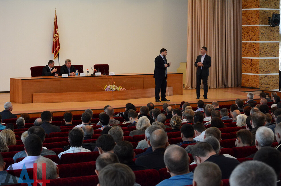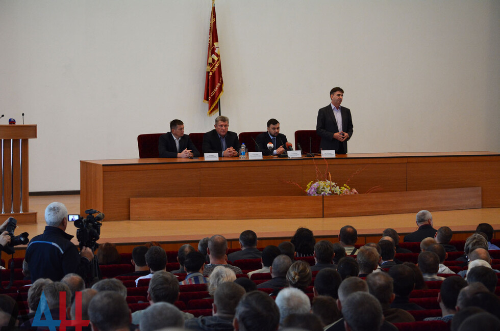 Донецк, 18 сен – корр. ДАН. Временно исполняющий обязанности Главы ДНР Денис Пушилин сегодня провел встречу с трудовым коллективом государственного предприятия «Шахта имени Засядько» в прифронтовом Киевском районе Донецка. Встреча прошла в актовом зале административного здания шахты.
