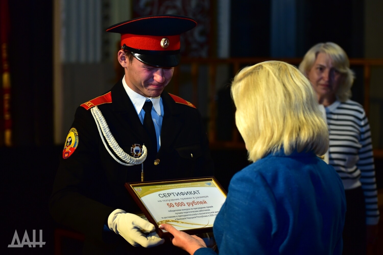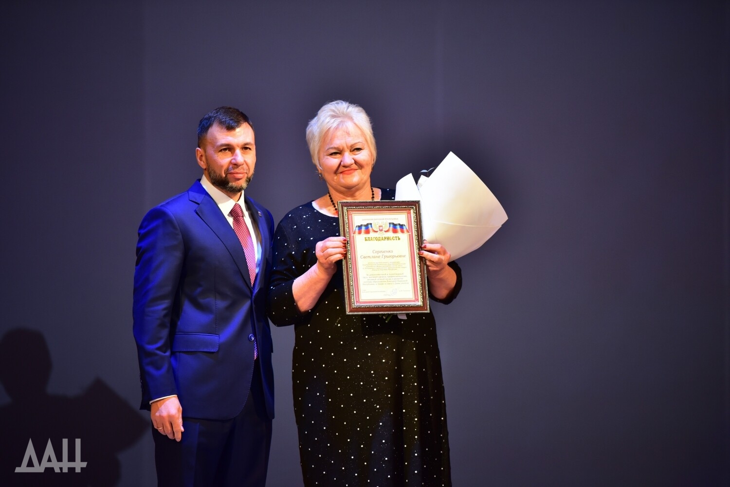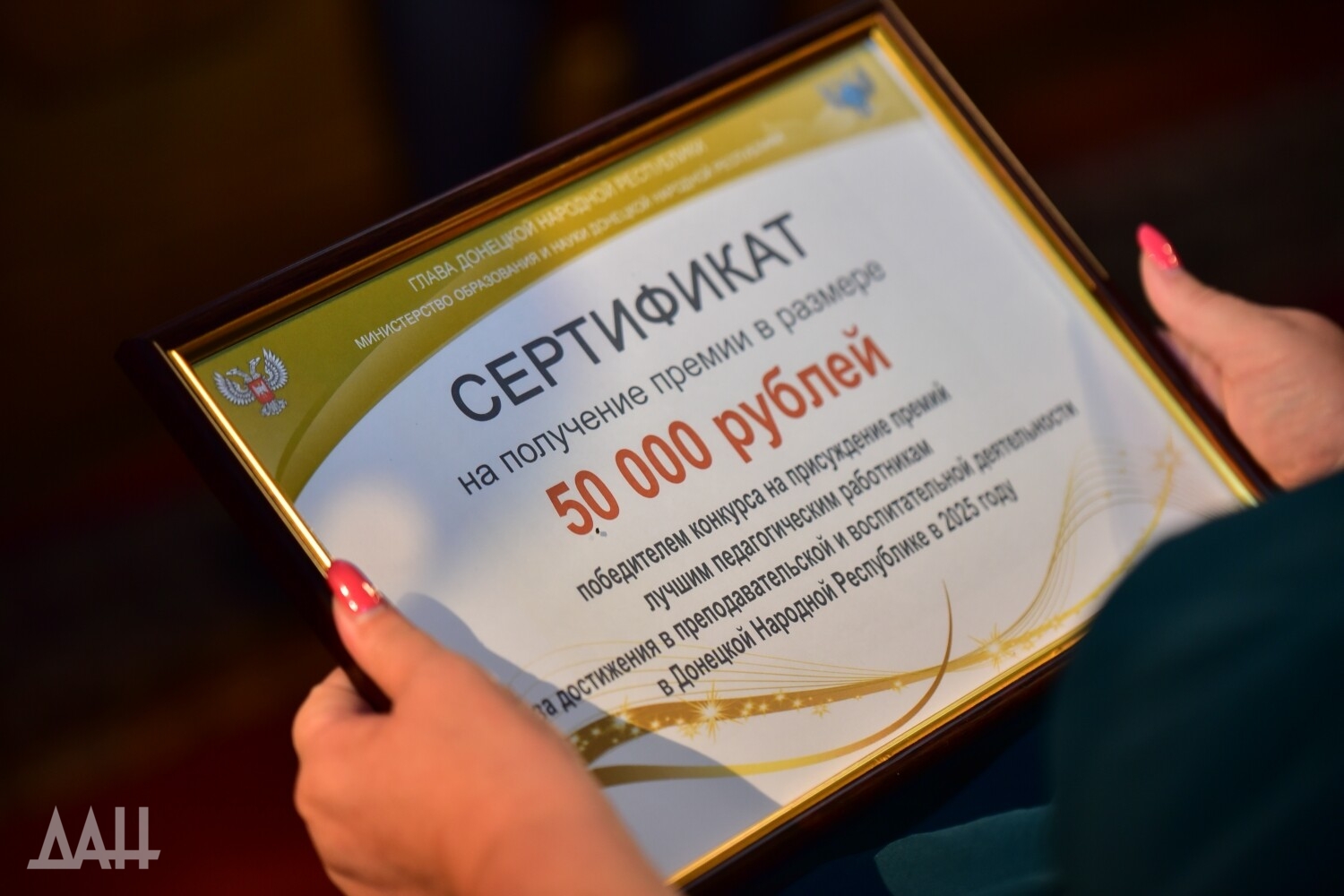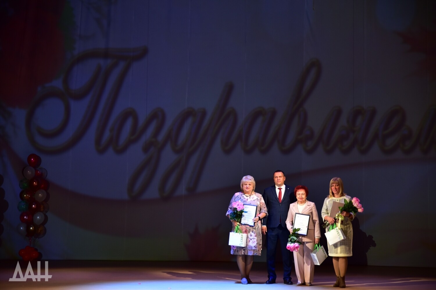В частности, Глава ДНР вручил сертификаты победителям конкурса на присуждение премий лучшим педагогическим работникам за достижения в преподавательской и воспитательной деятельности в размере 50 тысяч рублей, благодарности за работу, а также государственные награды.