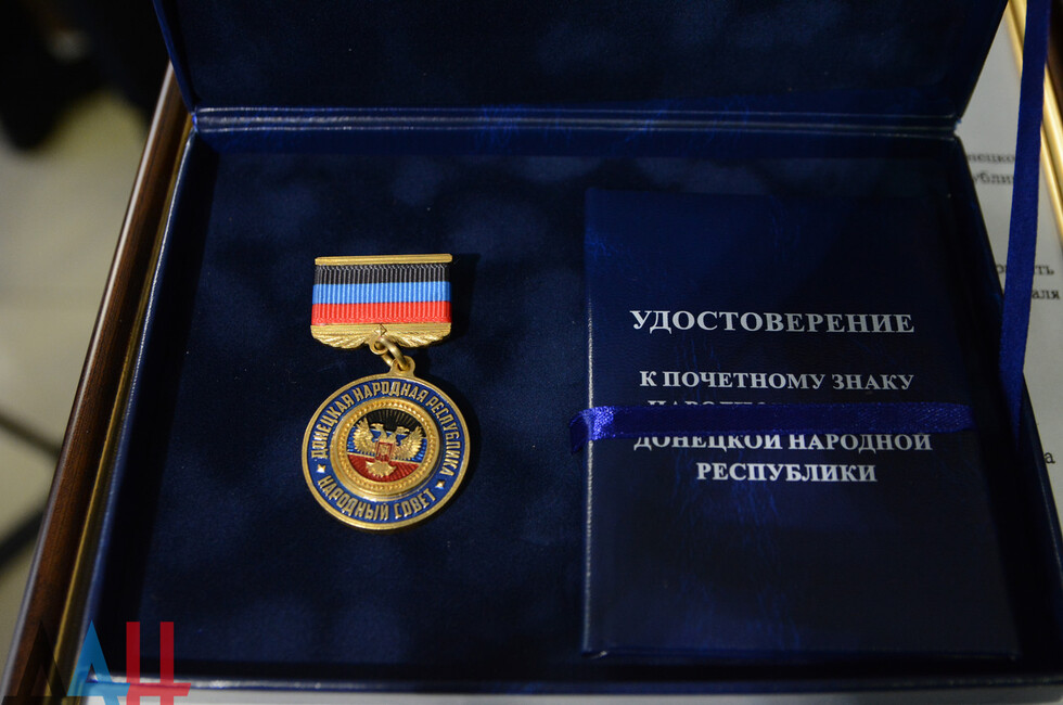 Затем Бидёвка вручил Почетный знак Народного Совета Донецкой Народной Республики.
