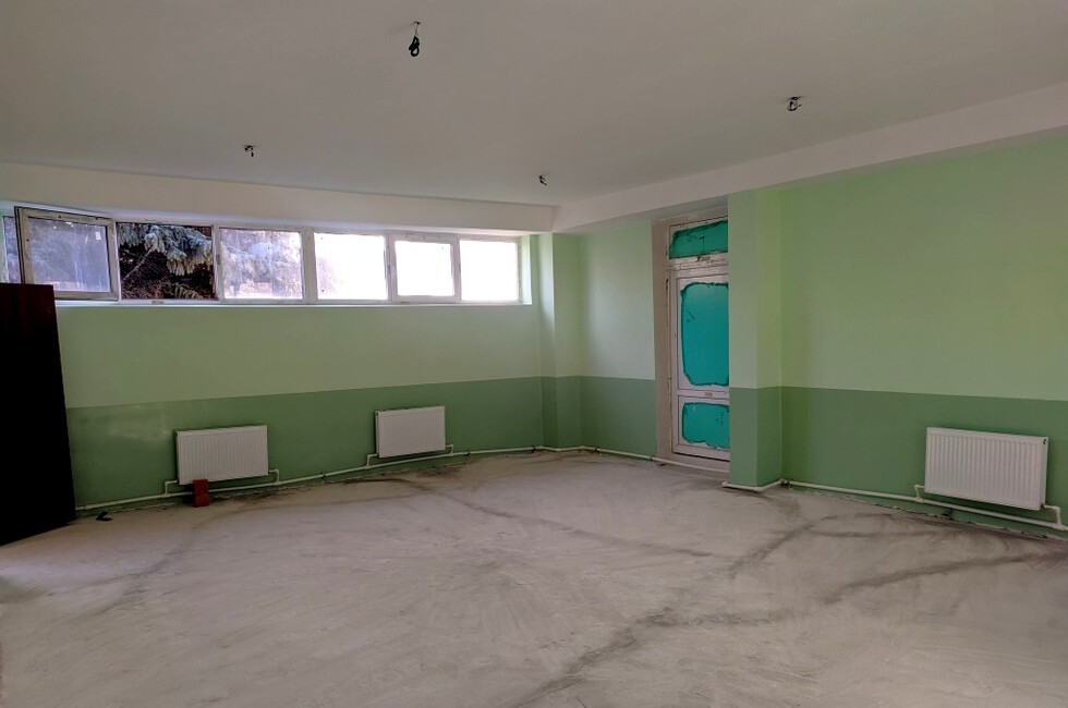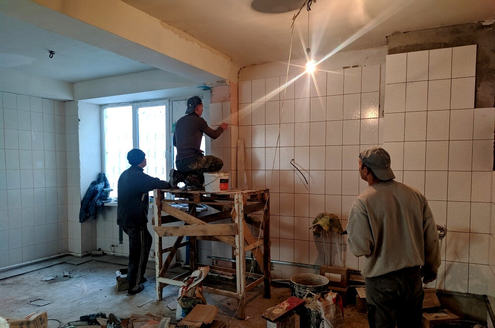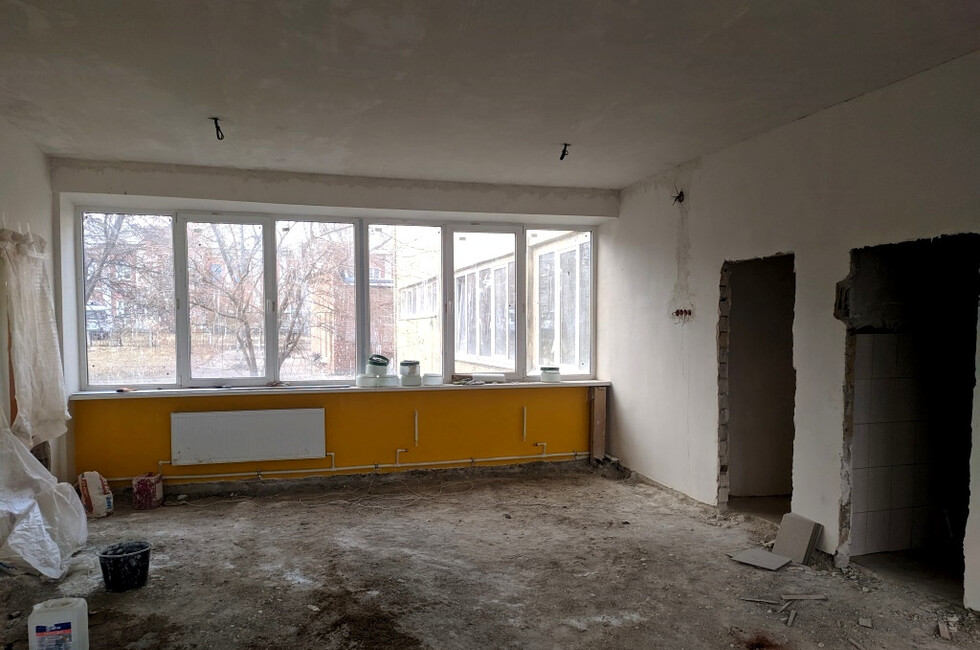 В учреждении уже восстановлена кровля, отремонтированы фасад и коммуникации, установлены окна, на завершающей стадии находятся отделочные работы в помещениях. На объекте трудятся около 20 специалистов.