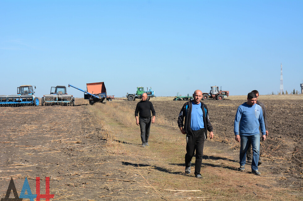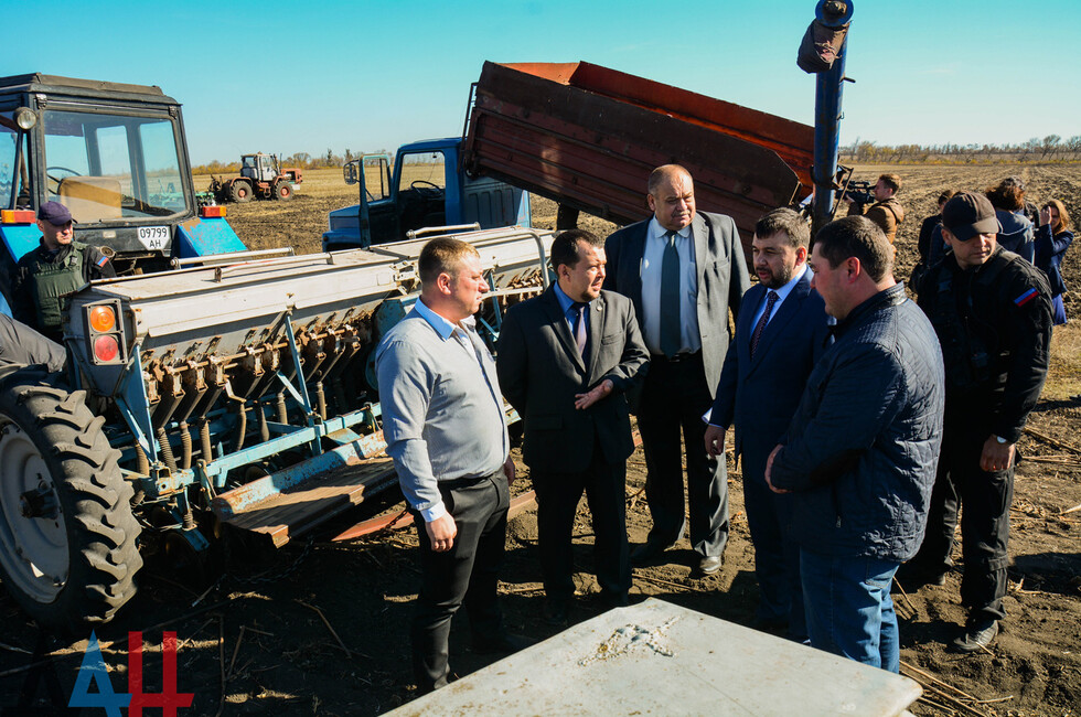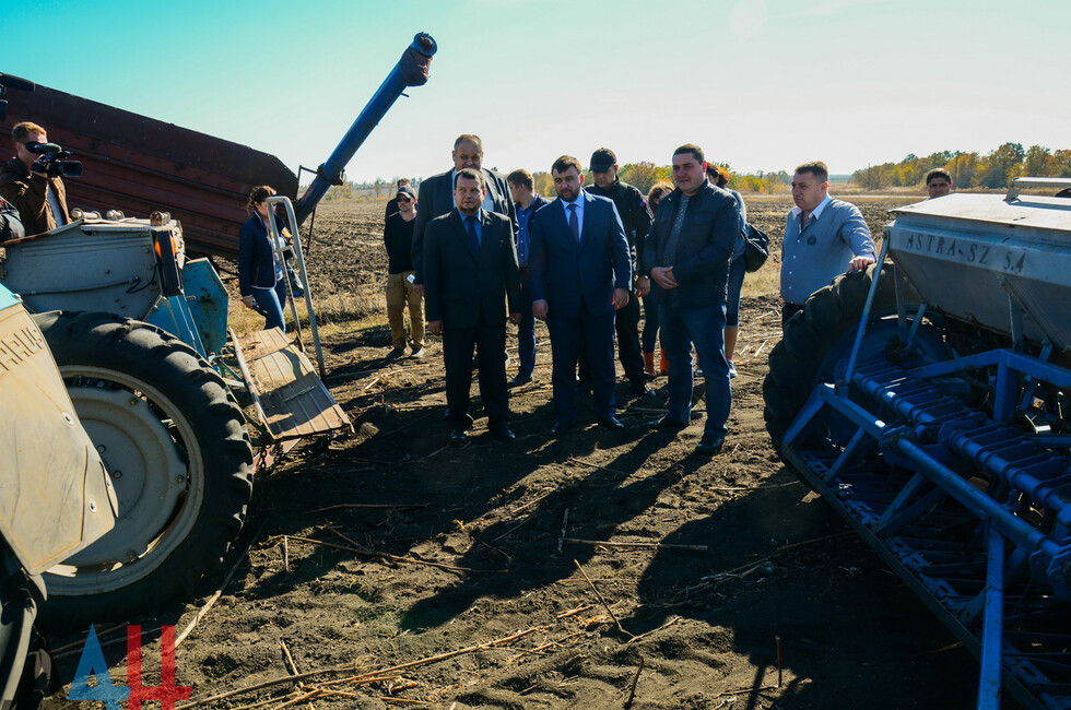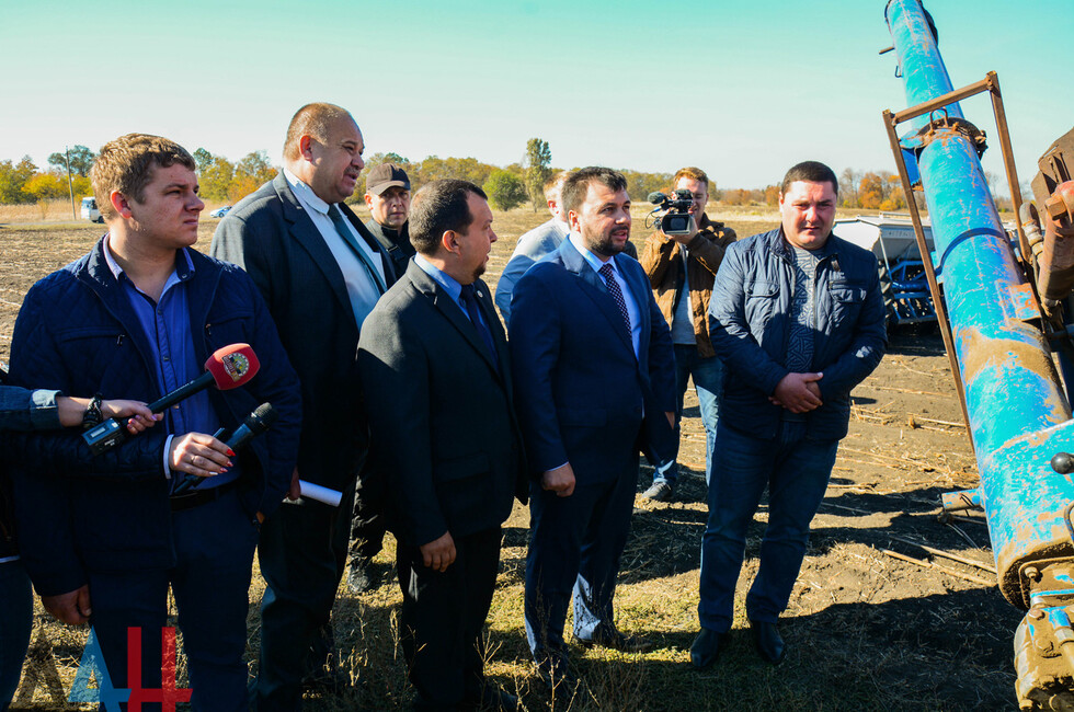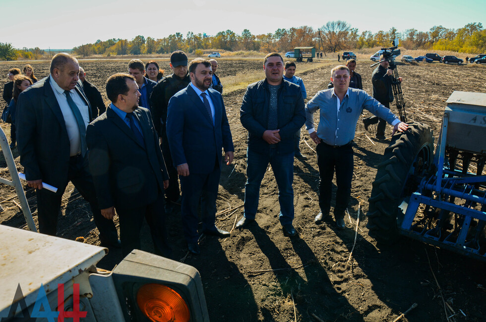 Донецк, 17 окт – корр. ДАН. Временно исполняющий обязанности Главы ДНР Денис Пушилин посетил сегодня фермерское хозяйство ООО «Союз» в Тельмановском районе. Встреча прошла в поле, где аграрии заканчивали посев озимых.