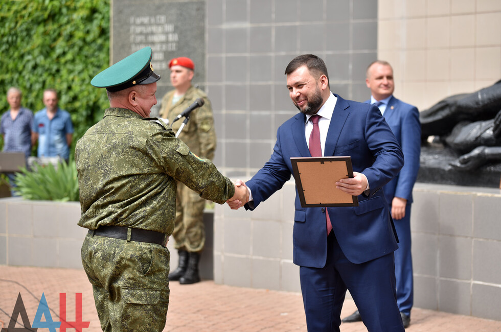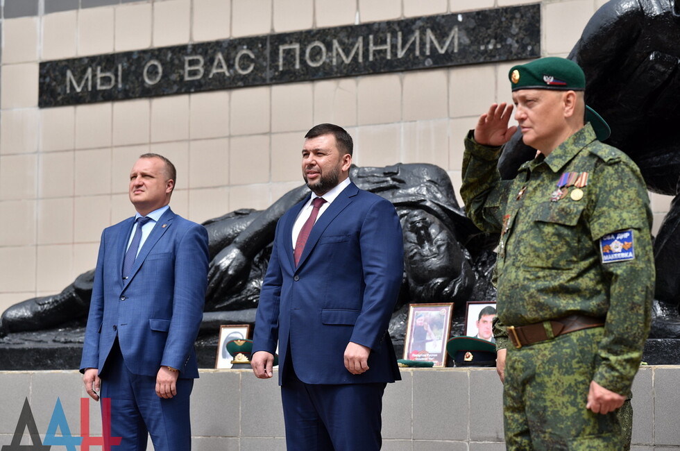 Макеевка, 28 мая – корр. ДАН. Митинг по случаю Дня пограничника прошел сегодня в центре Макеевки у мемориала воинам-интернационалистам. В мероприятии принял участие мероприятие Глава ДНР Денис Пушилин.