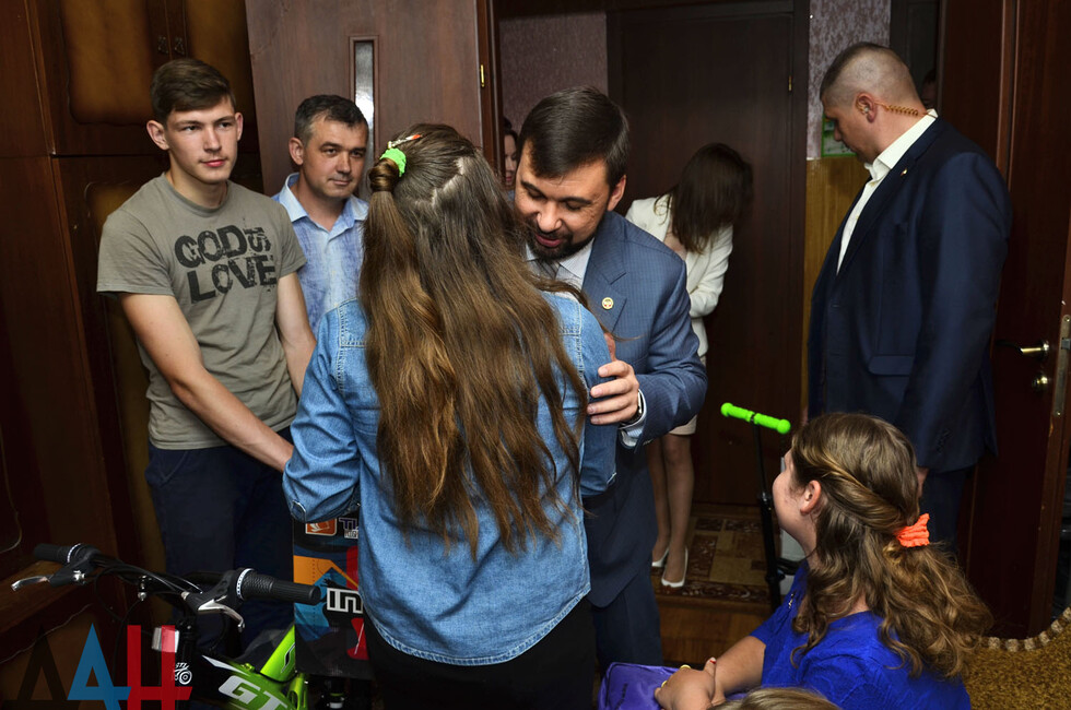 Донецк, 1 июн – корр. ДАН. Председатель Народного Совета ДНР Денис Пушилин посетил сегодня одну из многодетных семей в прифронтовом Петровском районе Донецка. Он вручил детям подарки по случаю Международного Дня защиты детей.