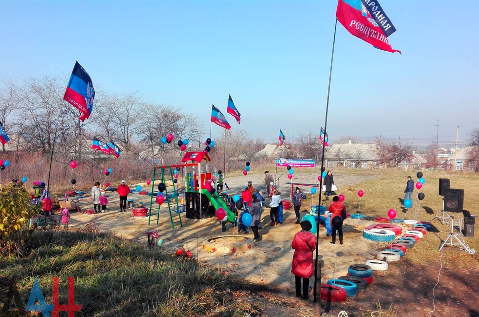 Шахтерск, 12 ноя – корр. ДАН. Третья по счету детская площадка, построенная в рамках проекта «Уютный двор» общественного движения «Донецкая Республика», открылась сегодня в поселке шахты №15 города Шахтерска на востоке ДНР.