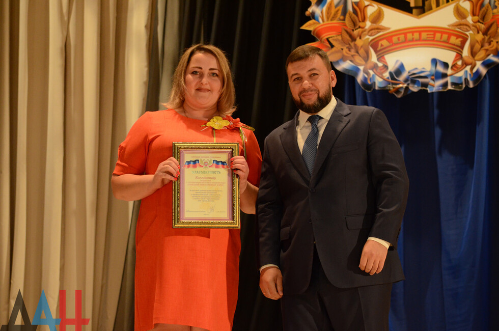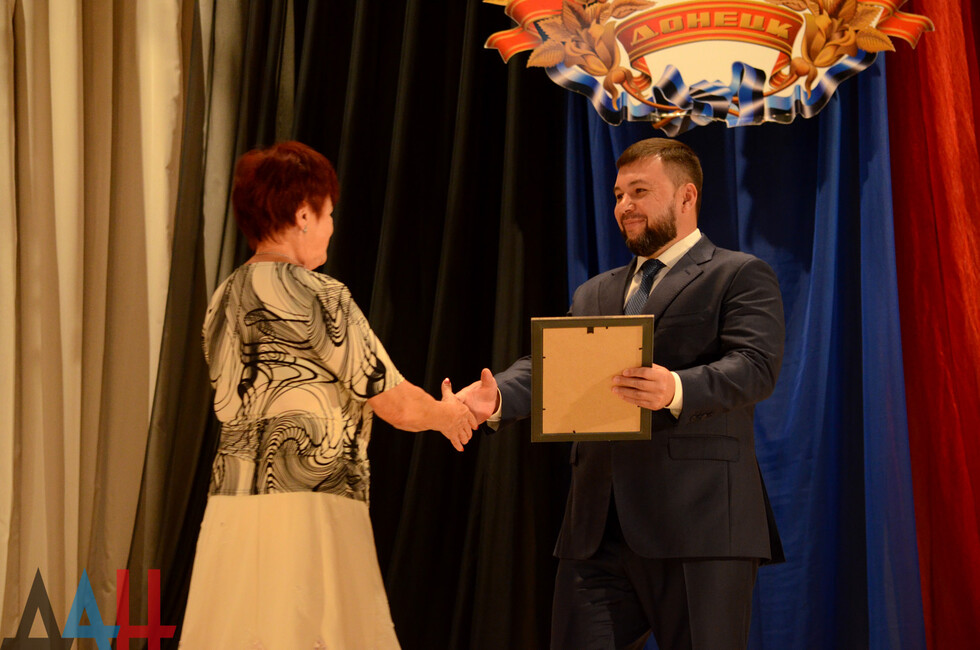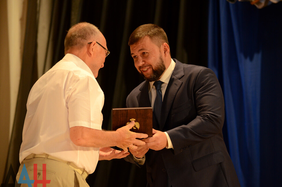 Донецк, 25 авг – корр. ДАН. Глава ДНР Денис Пушилин сегодня в преддверии празднования 151-й годовщины со дня основания Донецка вручил государственные награды отличникам труда. Церемония прошла во дворце культуры им. Куйбышева.
