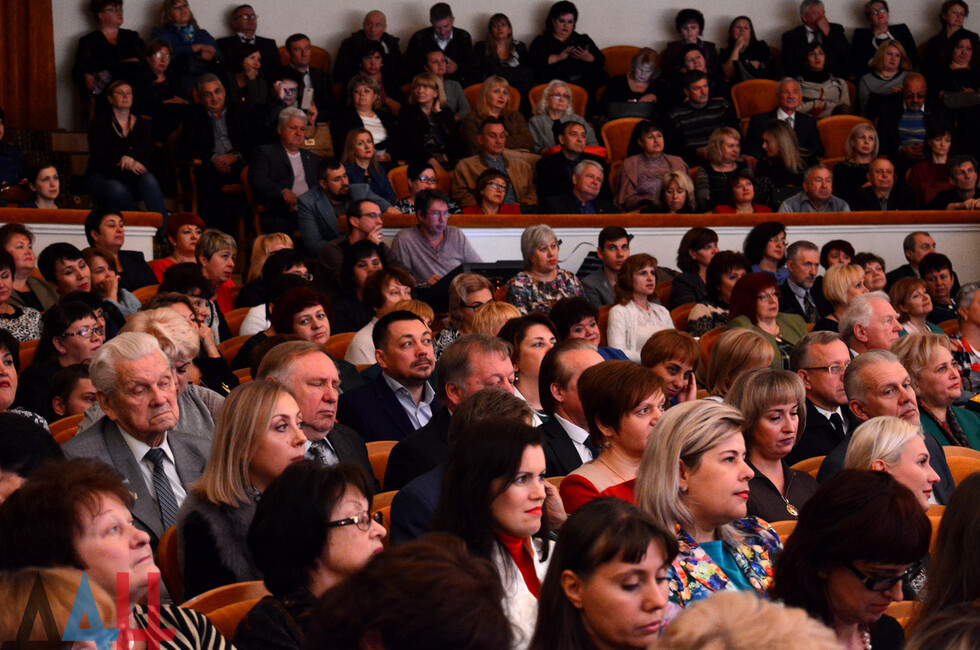 Донецк, 4 окт – ДАН. Мероприятие, посвященное предстоящему Дню работников образования и науки ДНР, прошло сегодня в Донецком государственном академическом музыкально-драматическом театре имени М.М. Бровуна. Педагогов и ученых поздравил врио Главы ДНР Денис Пушилин.
