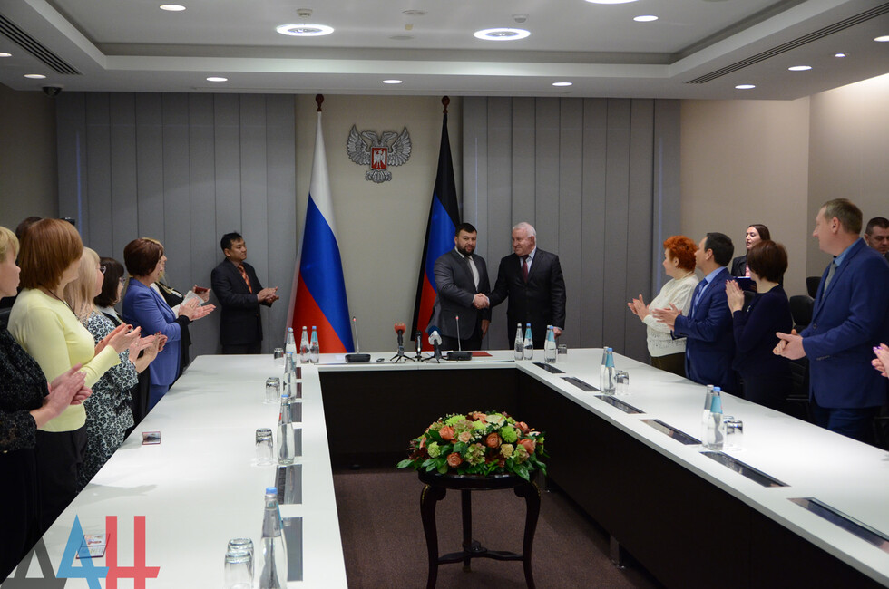 «Сегодня вручаются символы судебной власти 22 судьям Верховного суда и 13 судьям судов общей юрисдикции. Для этого была проведена кропотливая работа по пр и ведению профильного законодательства к документам Российской Федерации и теперь и в ДНР срок полномочий судей не ограничен временными рамками», - сказал Пушилин.