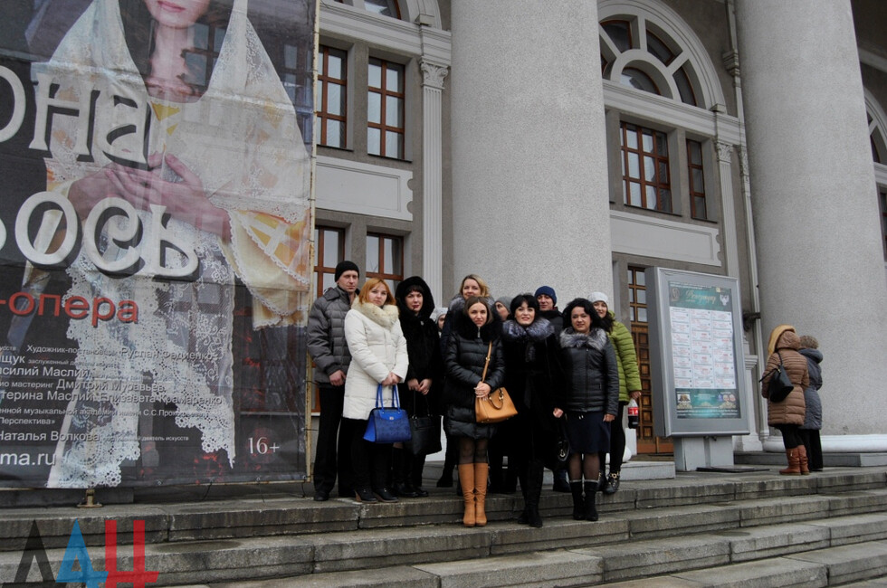 Донецк, 11 фев – ДАН. Показ спектакля по пьесе Михаила Булгакова «Зойкина квартира» для работников Докучаевского флюсо-доломитного комбината прошел сегодня на сцене Донецкого государственного академического музыкально-драматического театра. Об этом корр. ДАН сообщила секретарь местного отделения ОД «ДР» города Докучаевска Юлия Хижняк.