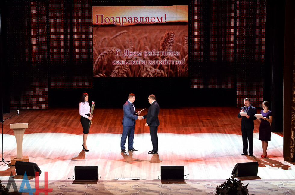 Донецк, 3 ноя – корр. ДАН. Порядка 500 представителей сельскохозяйственной отрасли ДНР сегодня в преддверии своего профессионального праздника собрались на торжества в зале столичного Центра славянской культуры. В рамках мероприятия прошло награждение лучших работников и праздничный концерт.