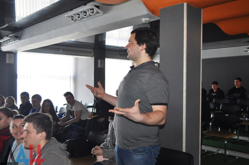 Всего в зале собралось более полусотни человек из Донецка, Макеевки, Горловки, Харцизска, Снежного и других городов. Встреча проходила в формате «вопрос-ответ» и продлилась около двух часов. Поднимались такие темы, как авторство шуток в КВН, совмещение КВН с учебой и личной жизнью, способы вывести свою команду на более высокий уровень. Участники команд Республики слушали гостя из РФ с явным интересом, а после некоторых его ответов в зале звучали аплодисменты.