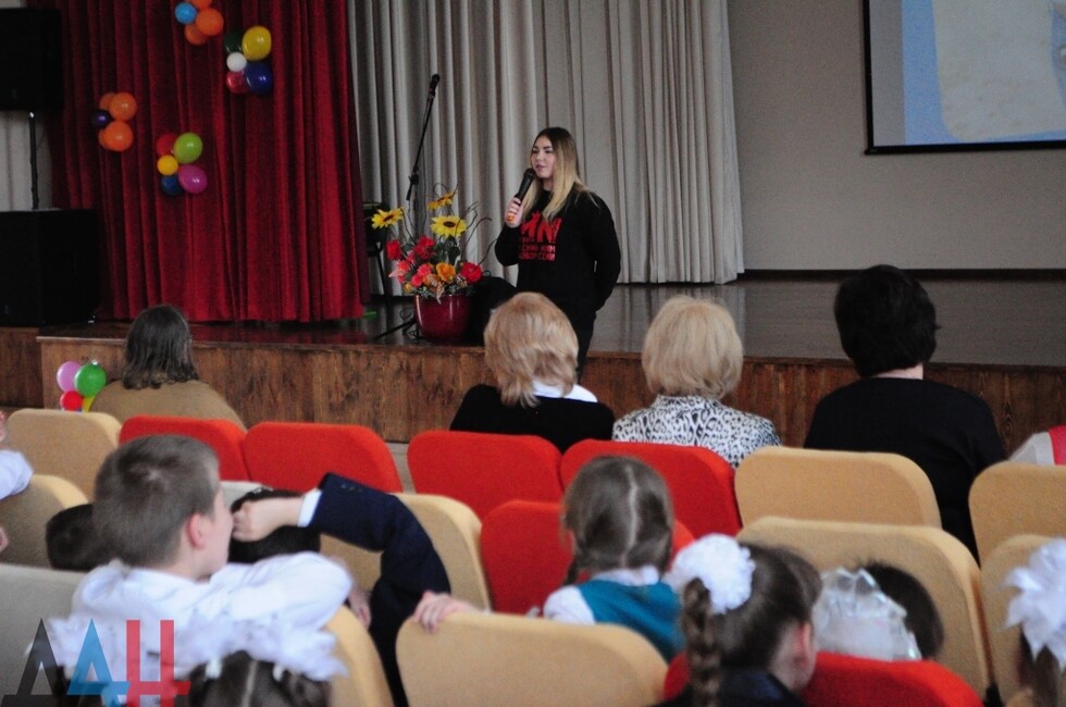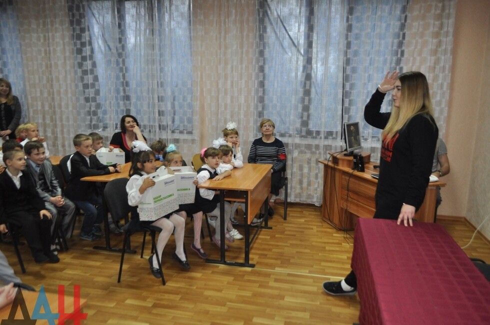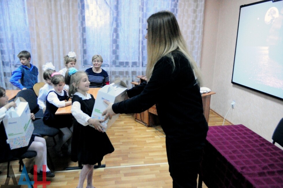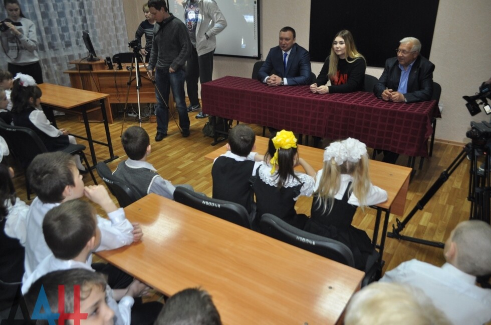 Гостья из России передала школьникам канцтовары и сладости, ответила на вопросы и раздала им автографы. Накануне с подобной программой побывала в школах Ясиноватой. Двадцатого мая запланирована поездка в Иловайск.