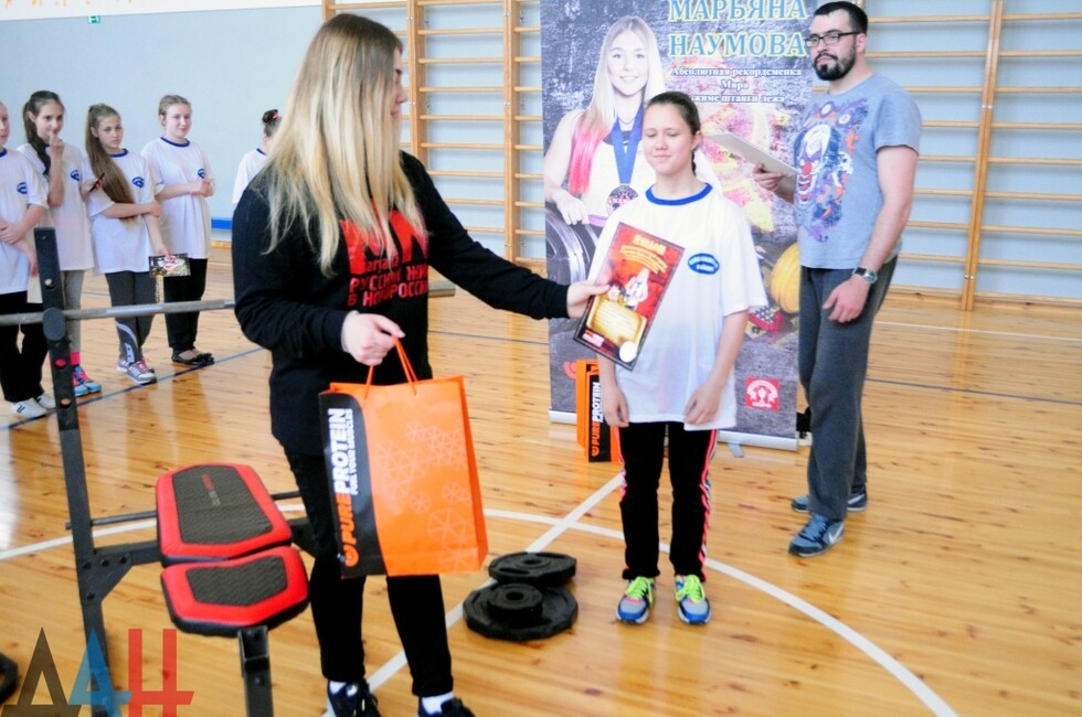 Донецк, 19 мая – корр. ДАН. Российская спортсменка, чемпион и рекордсмен мира по «русскому жиму» Марьяна Наумова посетила сегодня столицу ДНР. В рамках поездки гостья побывала в прифронтовых школах, передала ребятам учебные принадлежности и устроила спортивные состязания.