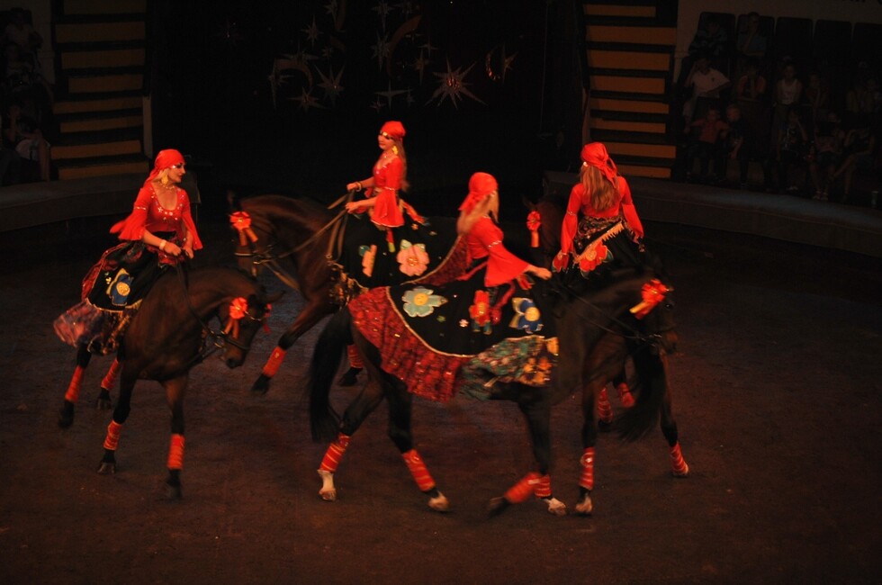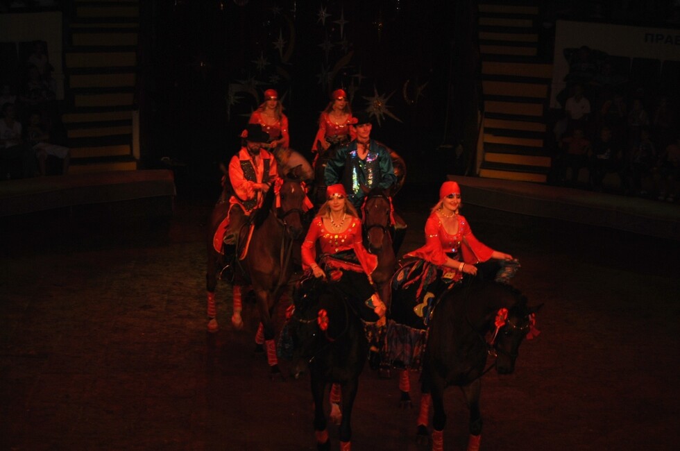 Следует отметить, что в рамках этой программы на арену вышли юные артисты ДНР – воздушная гимнастка Валерия Денисенко из Донецка и эквилибристка Александра Шейна из Горловки. На манеже также выступили участники Донецкого клуба конного спорта «Татерсаль» в образе веселых цыган с номером «Цыганская вольница».