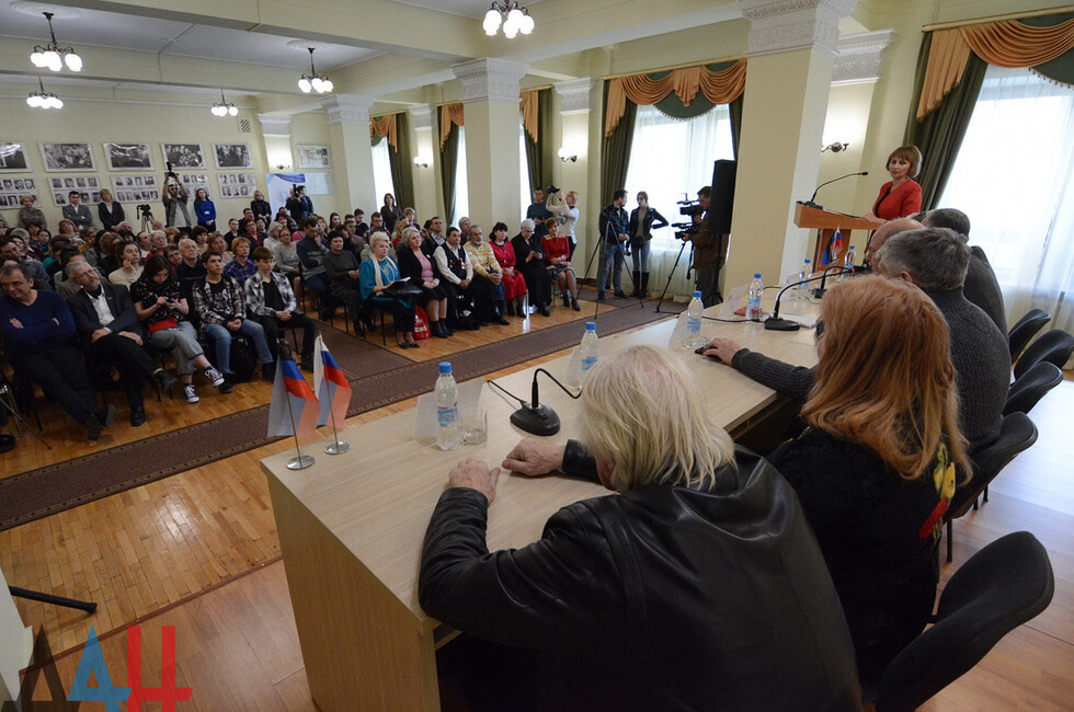 Пообщаться с известными актерами и писателями пришли представители Союза писателей Республики, студенты Донецкой государственной музыкальной академии имени Прокофьева, издатели из Донецка и другие. Всего - порядка 150 человек.