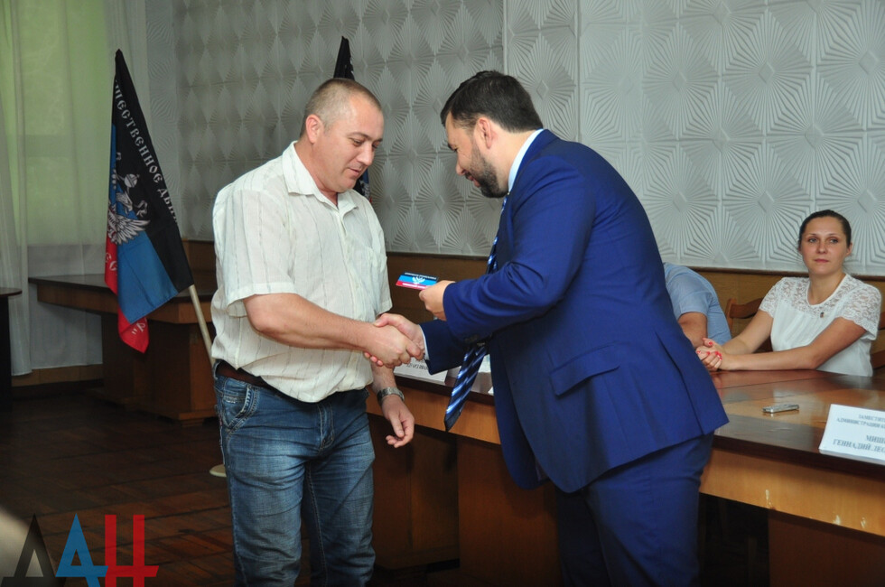 Церемония началась с государственного гимна ДНР. Затем первым членский билет получил директор угольного предприятия Андрей Нечепоренко. «Я надеюсь, что все сотрудники донесут это до своих коллективов, и наша команда будет пополняться», - сказал он.