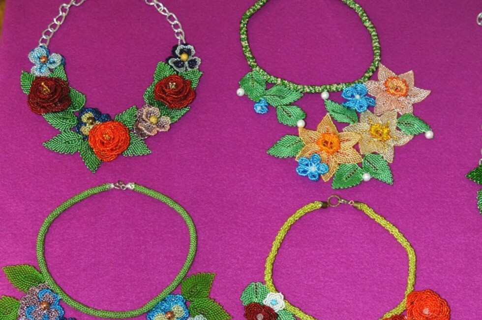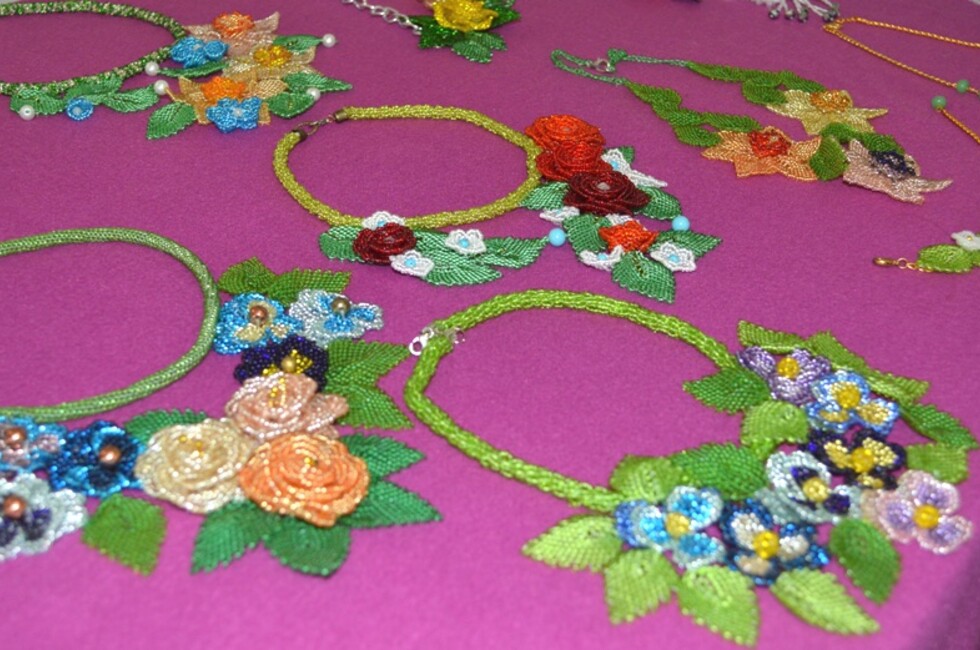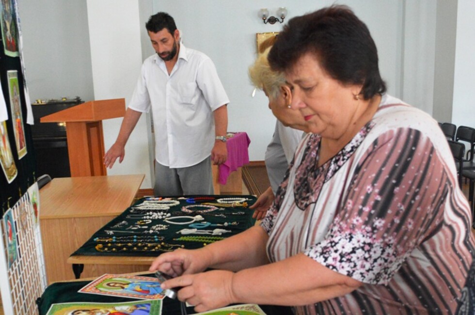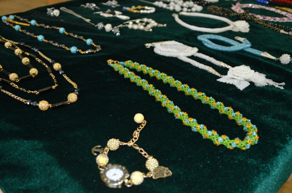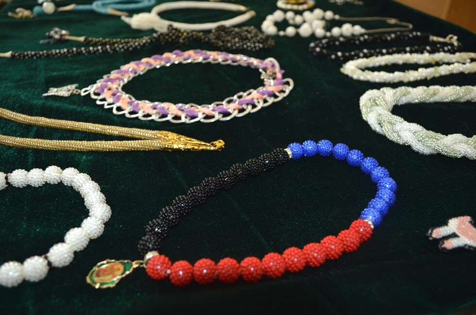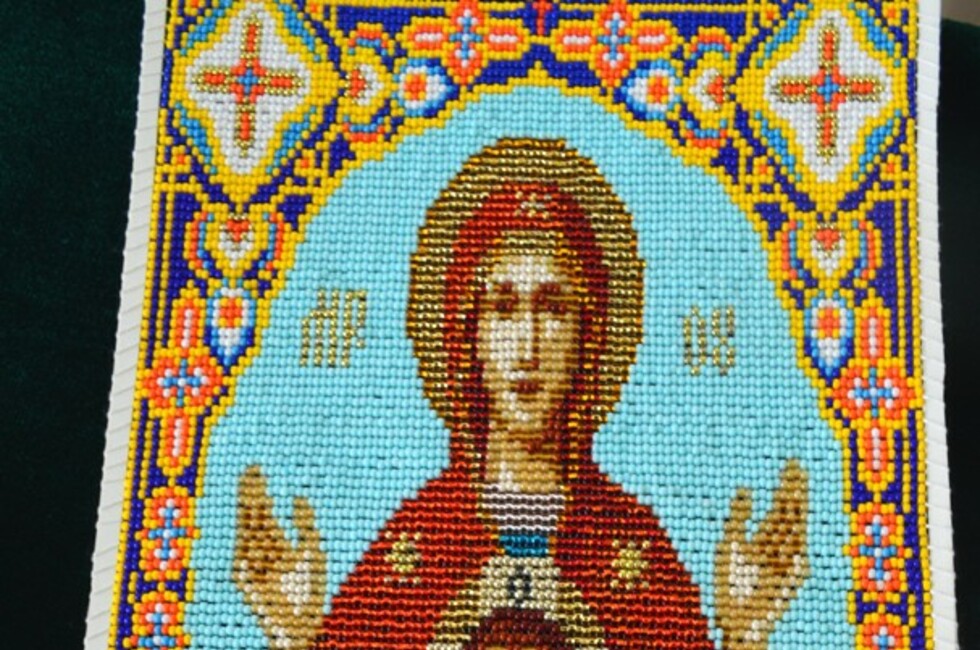 По данным пресс-службы, среди картин – иконы "Вера, Надежда, Любовь и мать их София», «Святой Преподобный Сергий Радонежский», «Умиление Пресвятой Богородицы», «Господь Вседержитель», «Святой Николай Чудотворец». Кроме того, экспозиция включила колье, медальоны, кулоны, серьги и подвески из разноцветного бисера и другие украшения.