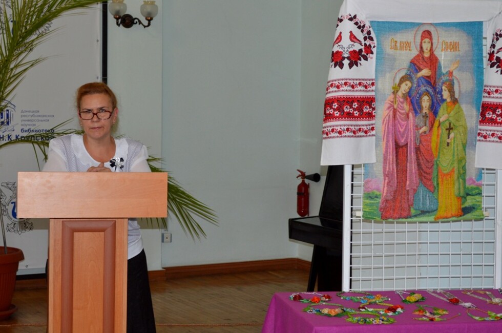 «Сегодня, 10 июля, в лекционном зале Донецкой республиканской универсальной научной библиотеки им. Н.К. Крупской состоялась выставка авторских работ жителей Красноармейска. На выставке было представлено 14 картин и более 50 украшений и сувениров из бисера», - отмечается в сообщении.