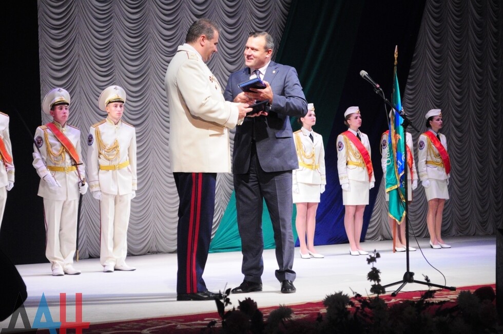 Торжество прошло в зале Донецкого государственного академического музыкально-драматического театра. На празднике собралось около 500 человек, среди которых председатель Народного Совета Денис Пушилин, министр доходов и сборов Александр Тимофеев, министр обороны Владимир Кононов и другие.